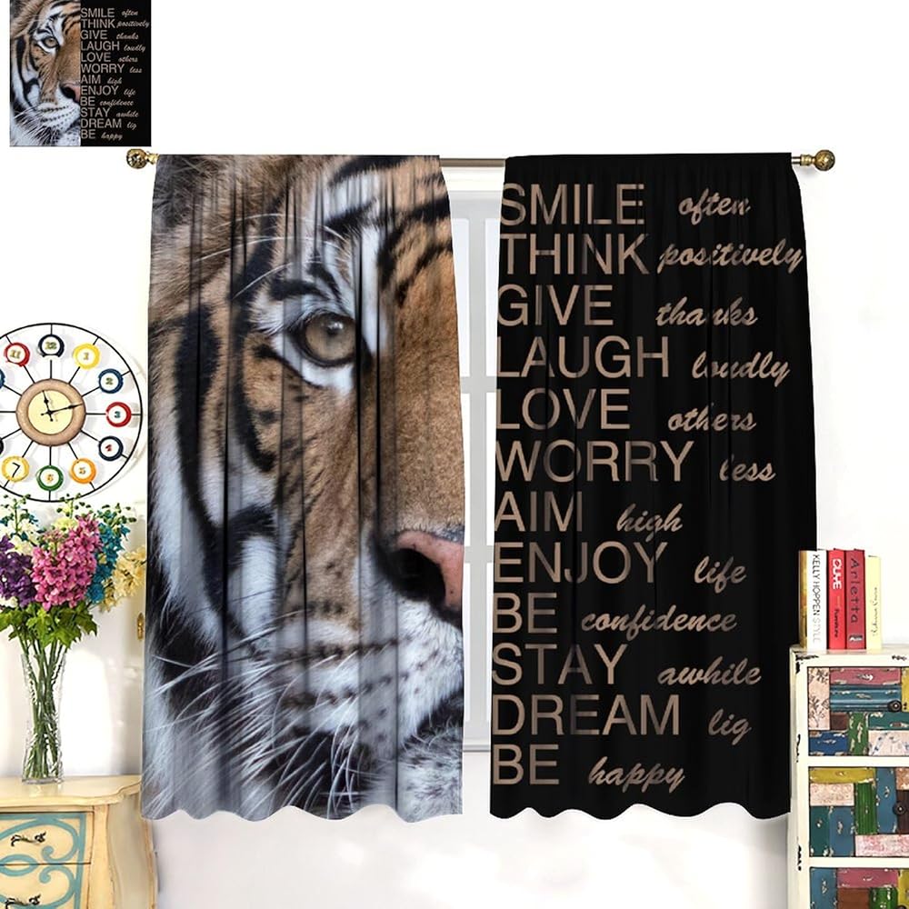 Tiger Curtains, Inspirational Quotes Tigers Head Men Window Treatments, Rod Pocket Thermal Insulated Drapes 2 Panel Sets for Boys Bedroom Living Room Kitchen, 42" W x 45" L【Decor】