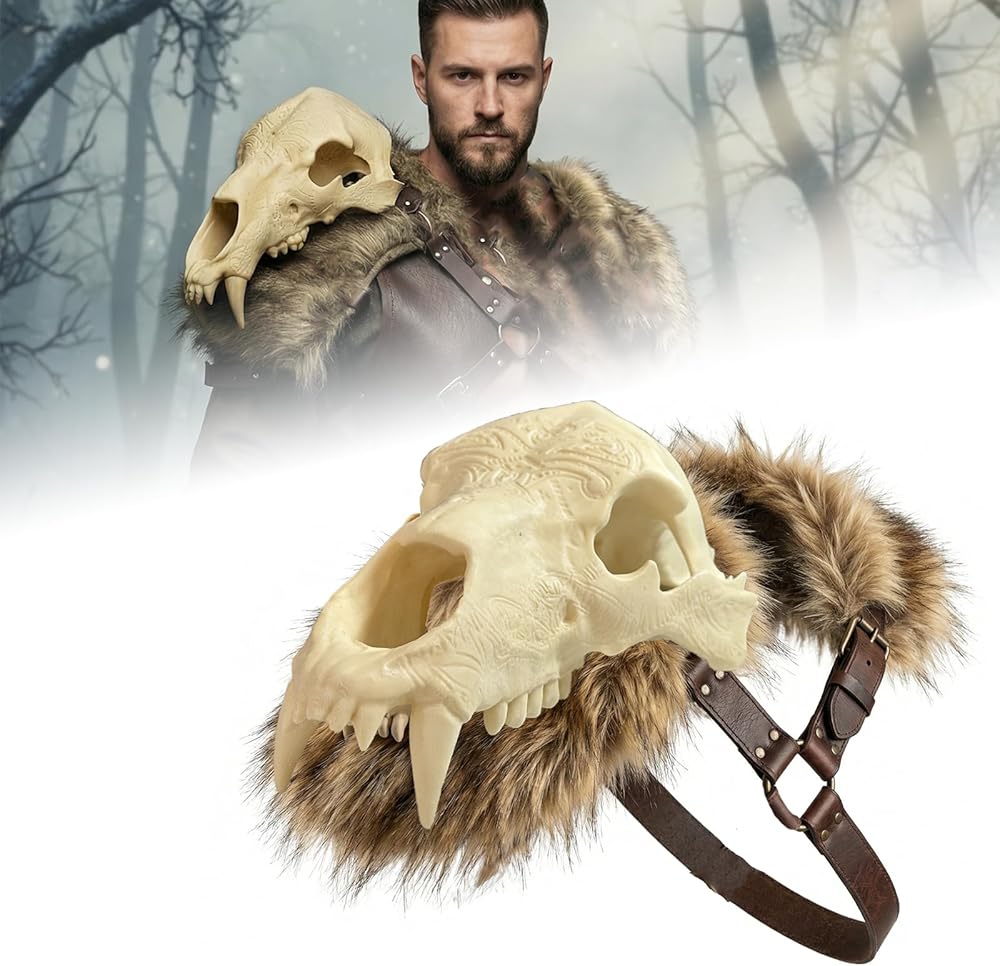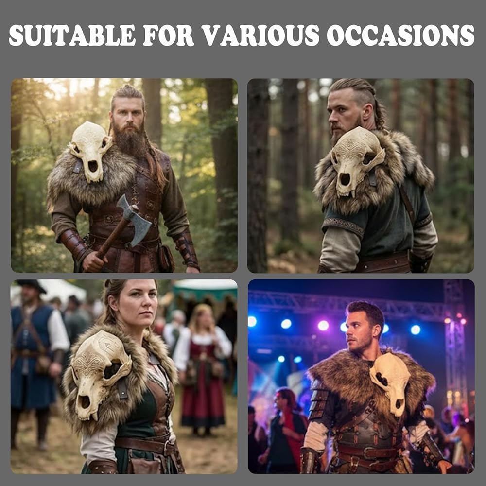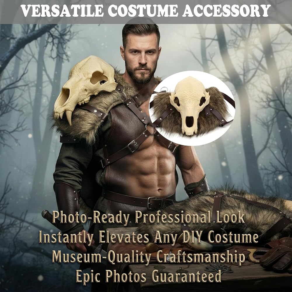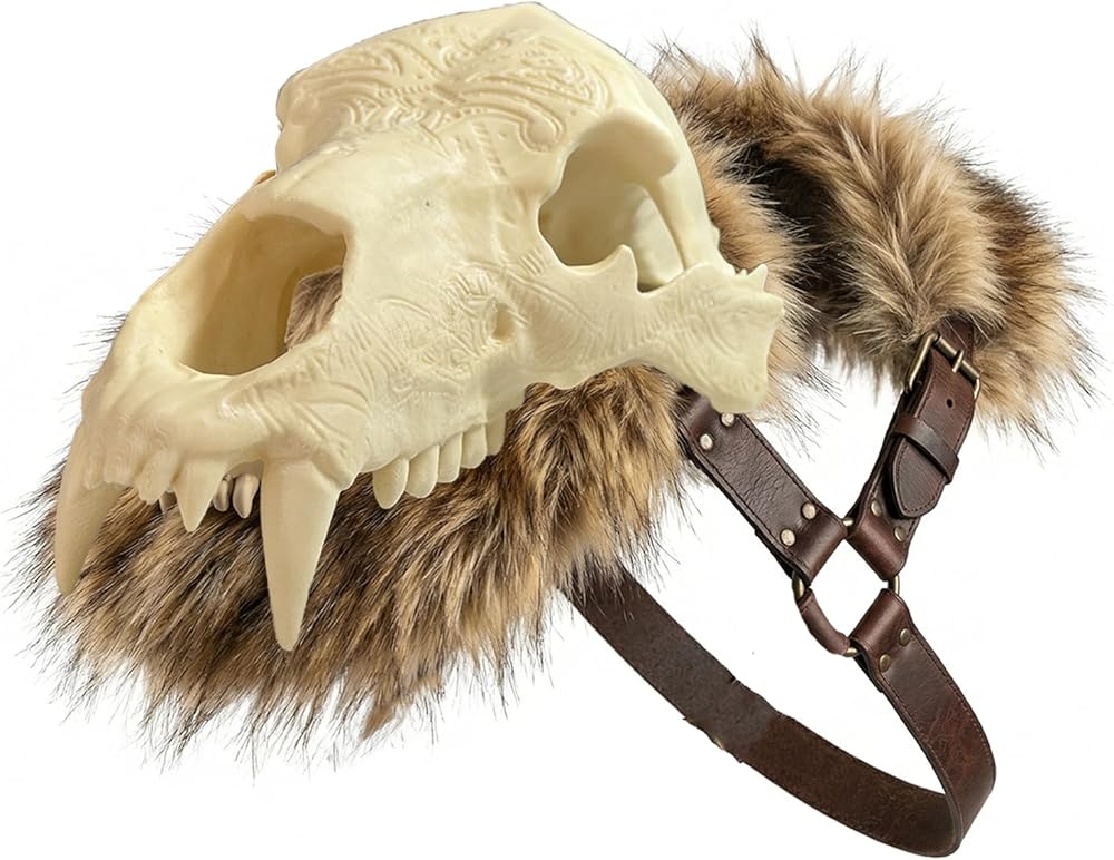 REALISTIC FAUX BONE & CRUELTY-FREE FUR: Crafted with ethics and durability in mind. The skull to mimic ancient, carved bone texture. The luxurious faux fur provides the realistic look and soft touch of animal hide without harming any animals. Paired with high-quality synthetic fur that looks and feels authentic, this piece offers a fierce appearance with modern comfort and durability.