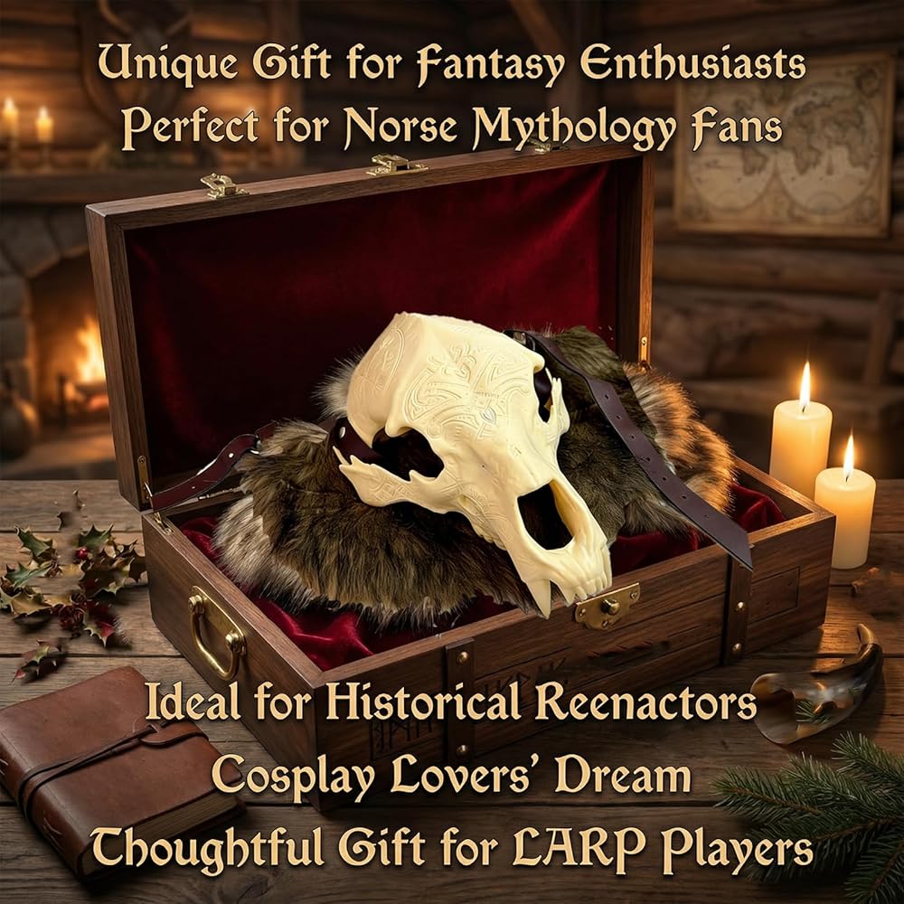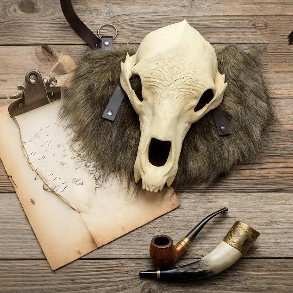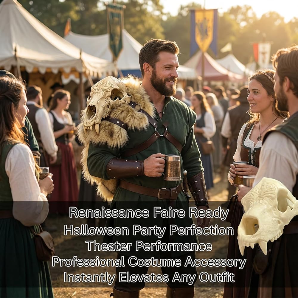 REALISTIC FAUX BONE & CRUELTY-FREE FUR: Crafted with ethics and durability in mind. The skull to mimic ancient, carved bone texture. The luxurious faux fur provides the realistic look and soft touch of animal hide without harming any animals. Paired with high-quality synthetic fur that looks and feels authentic, this piece offers a fierce appearance with modern comfort and durability.