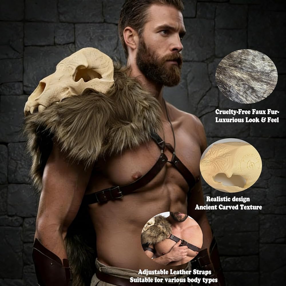 VERSATILE COSTUME ACCESSORY: Faux Fur & Shoulder Armor ultimate finishing touch for a wide range of characters. Perfect for portraying a Viking Berserker, Medieval Barbarian, Hunter. An ideal accessory for Renaissance Faires, LARP events, Halloween parties, and theatrical productions,Easily strap it on over your costume or clothing,commanding presence that will turn heads and earn admiration.