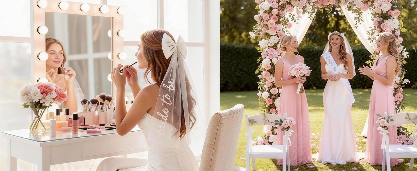 【IDEAL FOR EVERY BRIDAL OCCASION】Ensure the bride shines at her bachelorette party, bridal shower, rehearsal dinner, or engagement event. This beautiful bridal sash and veil set adds a festive, photogenic touch that stands out in photos and videos
