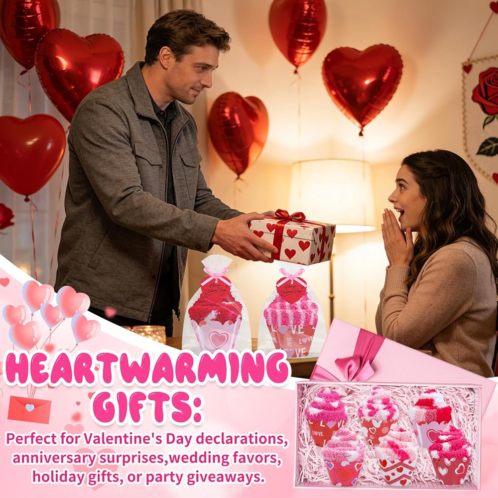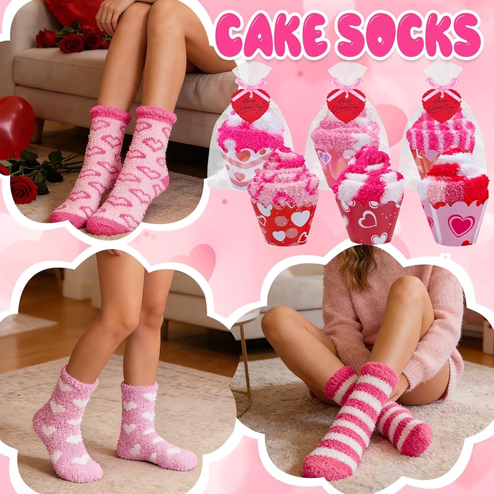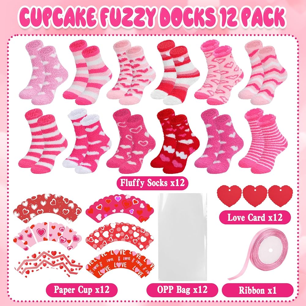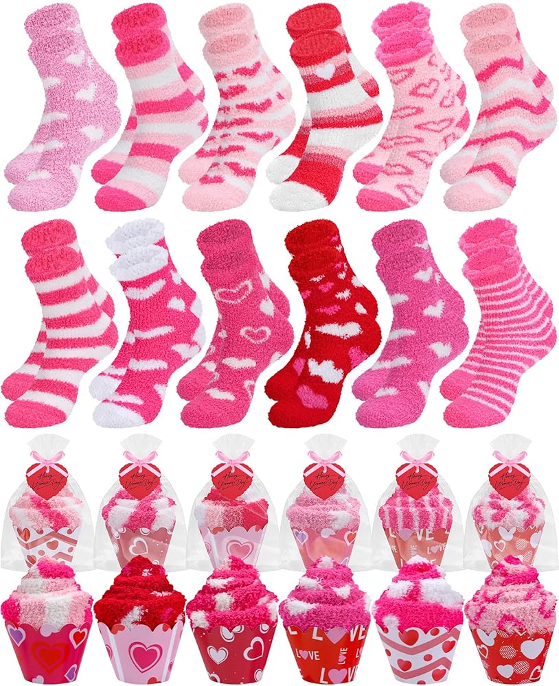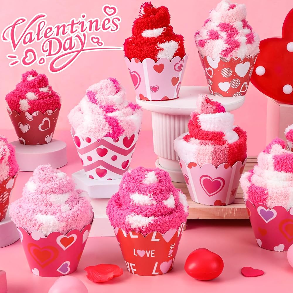 12 زوجًا من جوارب عيد الحب كب كيك هدية للنساء بالجملة، 12 نمطًا كلاسيكيًا منفوشًا ودافئًا جوارب عيد الحب مع بطاقات القلب، هدايا يوم جالنتين للزوجة والأصدقاء الأم