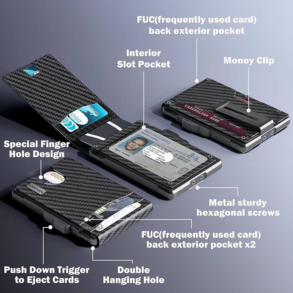 【مصممة حديثًا من أجل راحتك】: محفظة umoven الرجالية مصنوعة من غطاء جلدي عالي الجودة مقاوم للماء وحجرة معدنية فاخرة. تتميز الحافظة المصنوعة من الألومنيوم بوظيفة إخراج سلسة، مما يسمح لك بتمرير الزر الجانبي بسهولة والوصول إلى بطاقاتك. الغطاء الجلدي مزود بمغناطيس داخلي لسهولة ربطه بالغرفة.