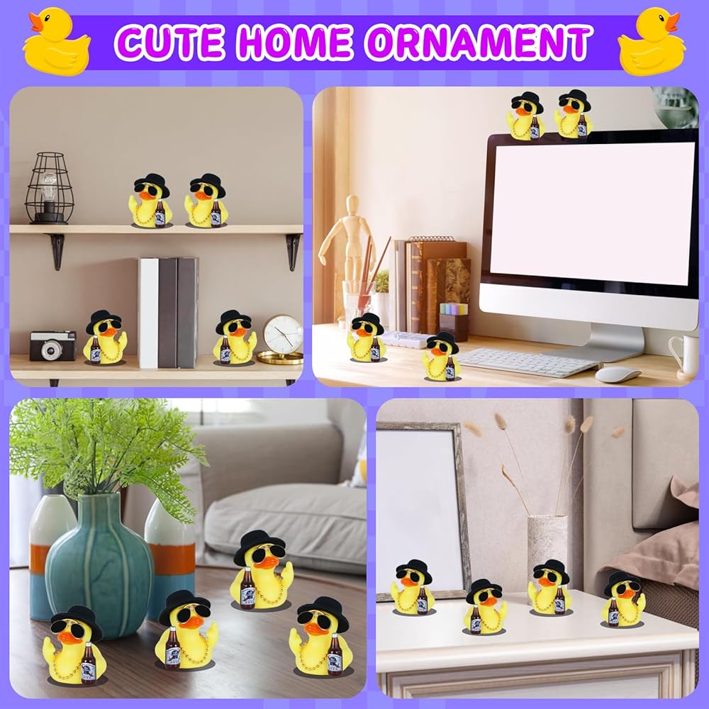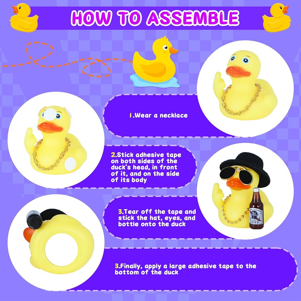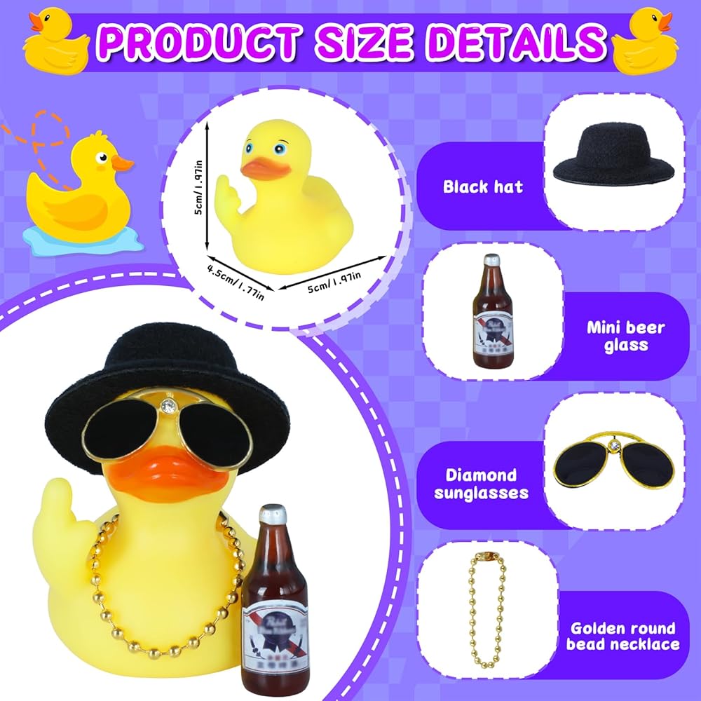 Easy Setup & Play – Use included double-sided tape to secure the hat, necklace, and bottle. Position novelty rubber ducks on any smooth surface for instant comedic relief.