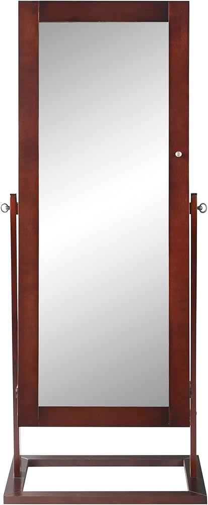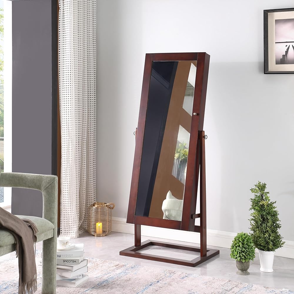 خزانة ملابس للمجوهرات قائمة بذاتها من منتجات برومان مع مرآة كاملة الطول، ومنظم تخزين المكياج، وإسبريسو