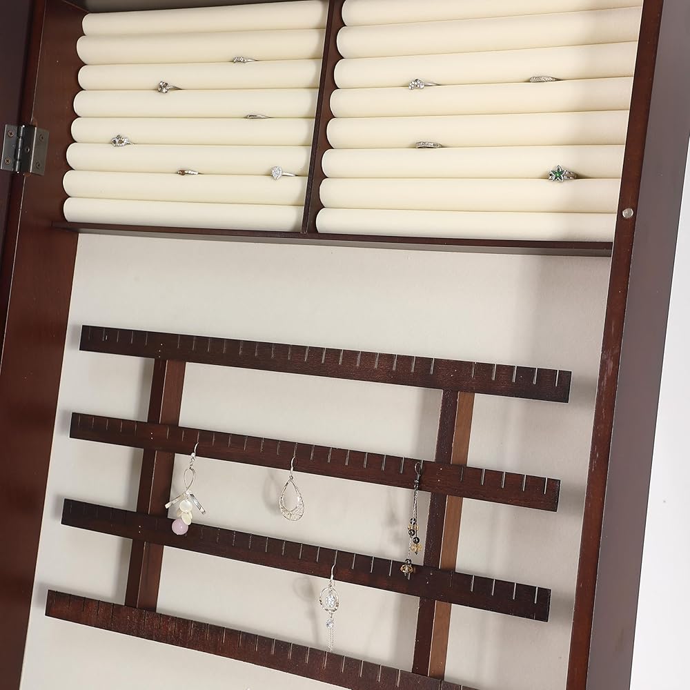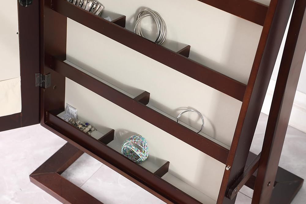• 【High Quality Material】Constructed from high-quality engineered wood, this jewelry armoire offers both spacious storage and exceptional durability. Inside, the soft velvet lining provides a luxurious home for your finest jewelry.