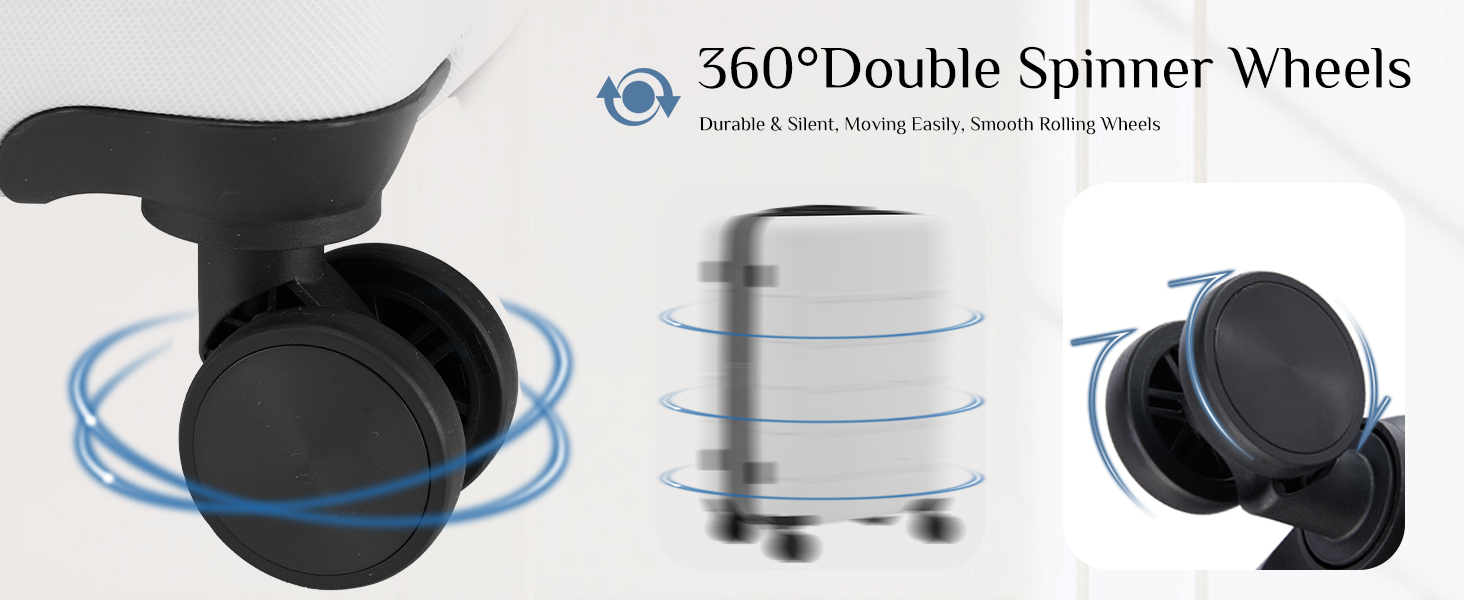 【عجلات دوارة 360 درجة بدون مجهود】عجلات دوارة مزدوجة 360 درجة توفر انزلاقًا سلسًا للغاية وهادئًا على جميع الأسطح. مناورة سهلة عبر المطارات والمحطات وشوارع المدينة بدون سحب، مما يجعل كل رحلة خفيفة وخالية من التوتر.