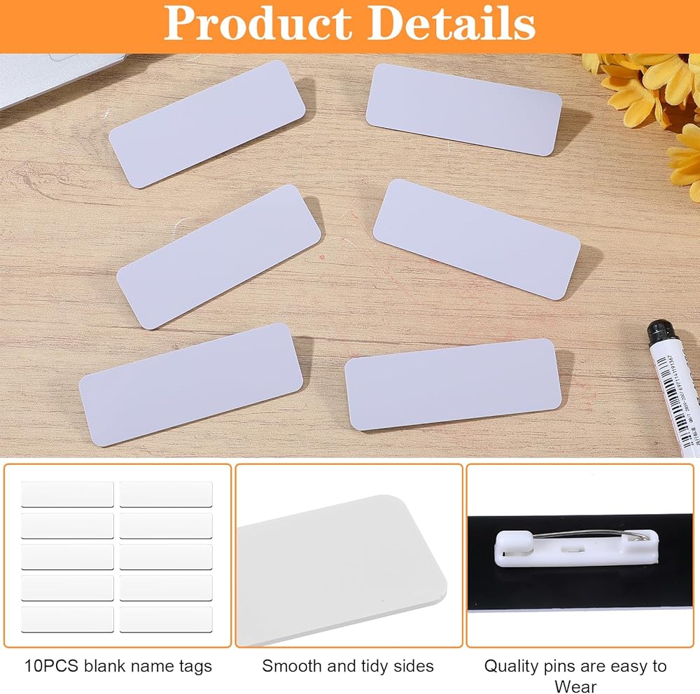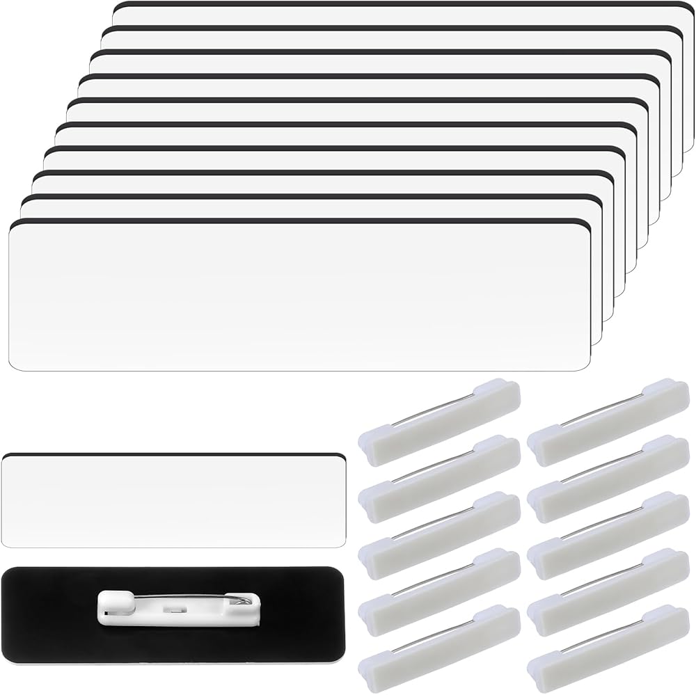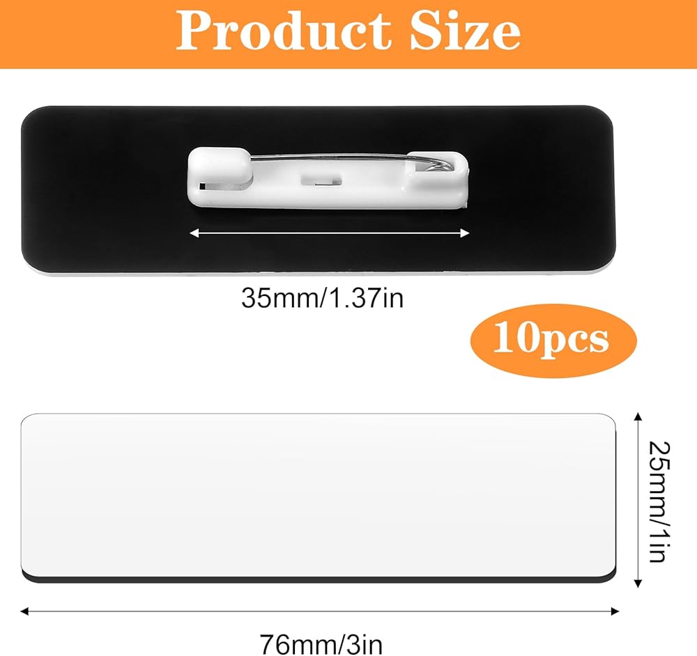 Packing List: 10 PCS Blank Name Tags + 10 PCS Pin Backings