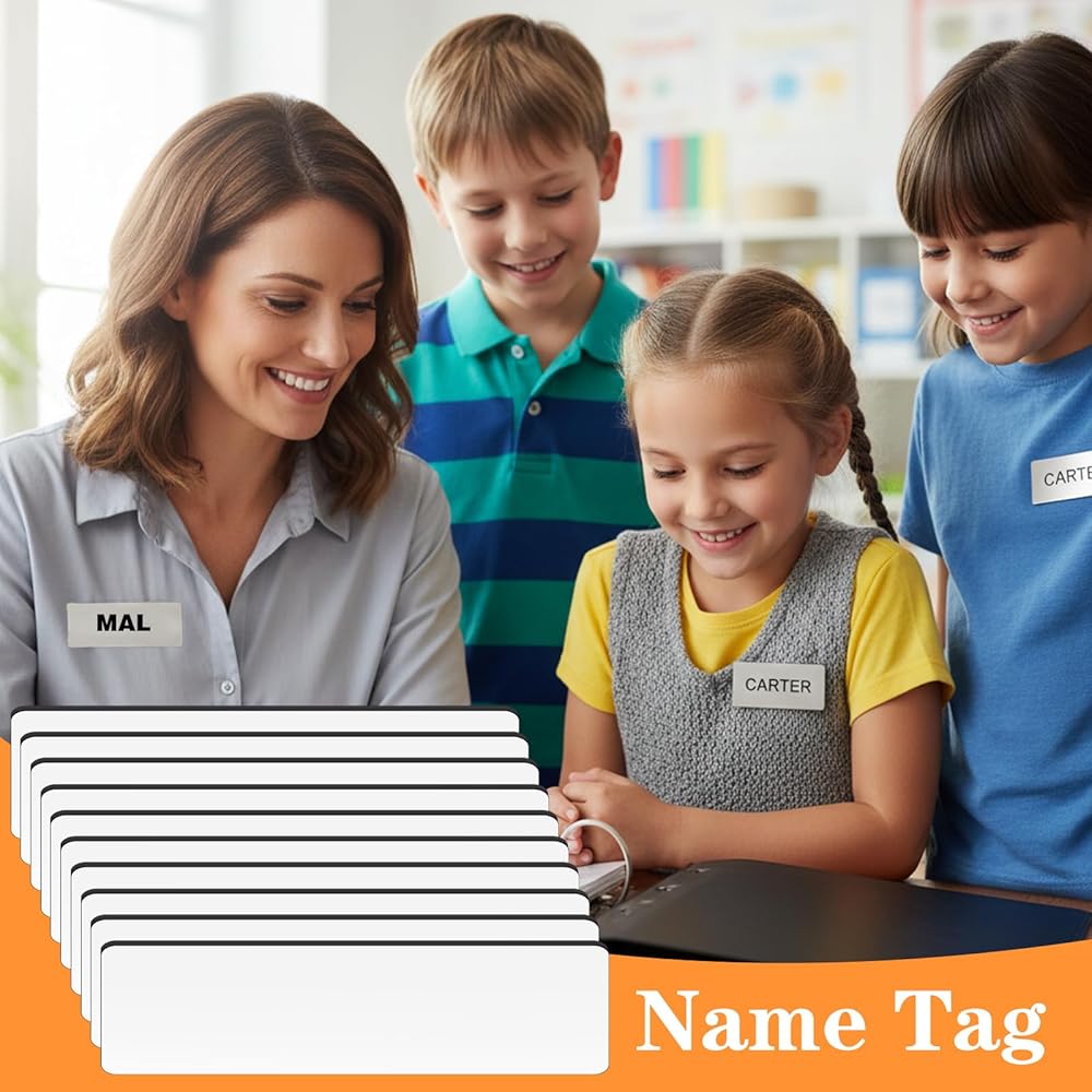 10 قطع من شارات الأسماء القابلة للتخصيص، وبطاقات تعريف ذاتية الصنع مع دعامة آمنة للدبابيس، وبطاقات أسماء بلاستيكية متينة للاستخدام في المدرسة والمكتب والمناسبات