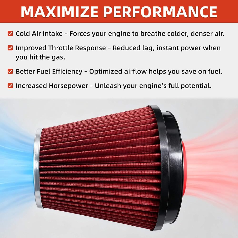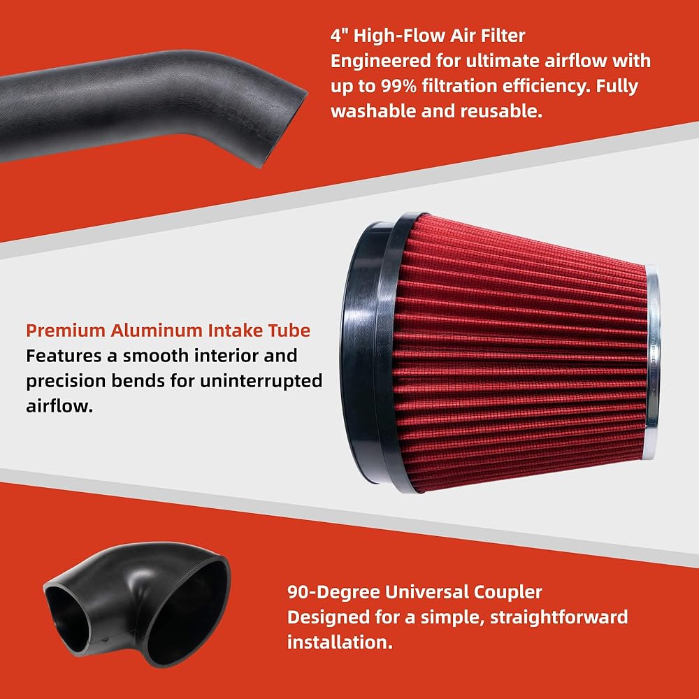 【فلتر هواء عالي التدفق وقابل لإعادة الاستخدام】 يتضمن فلتر هواء عالي الأداء كبير الحجم مقاس 4 بوصات لتحقيق أقصى تدفق للهواء. قابلة للغسل وإعادة الاستخدام بكفاءة ترشيح تصل إلى 99% للحفاظ على حماية المحرك مع تعزيز الأداء.
