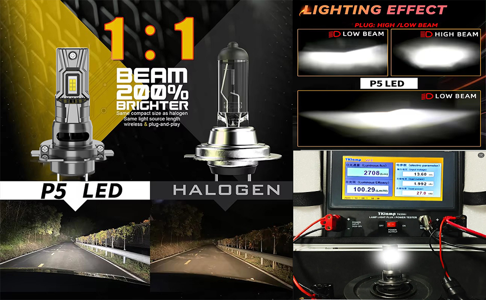 حجم 1:1 وتثبيت أسهل: على عكس معظم المصابيح المتوفرة في المصابيح لدينا، تم تصميمها كحل شامل دون الحاجة إلى صندوق تشغيل خارجي أو أسلاك. يضمن هذا التصميم الفريد أن تكون بنفس حجم المخزون، مما يحل مشكلات التثبيت الشائعة مثل مشكلات غطاء الغبار.