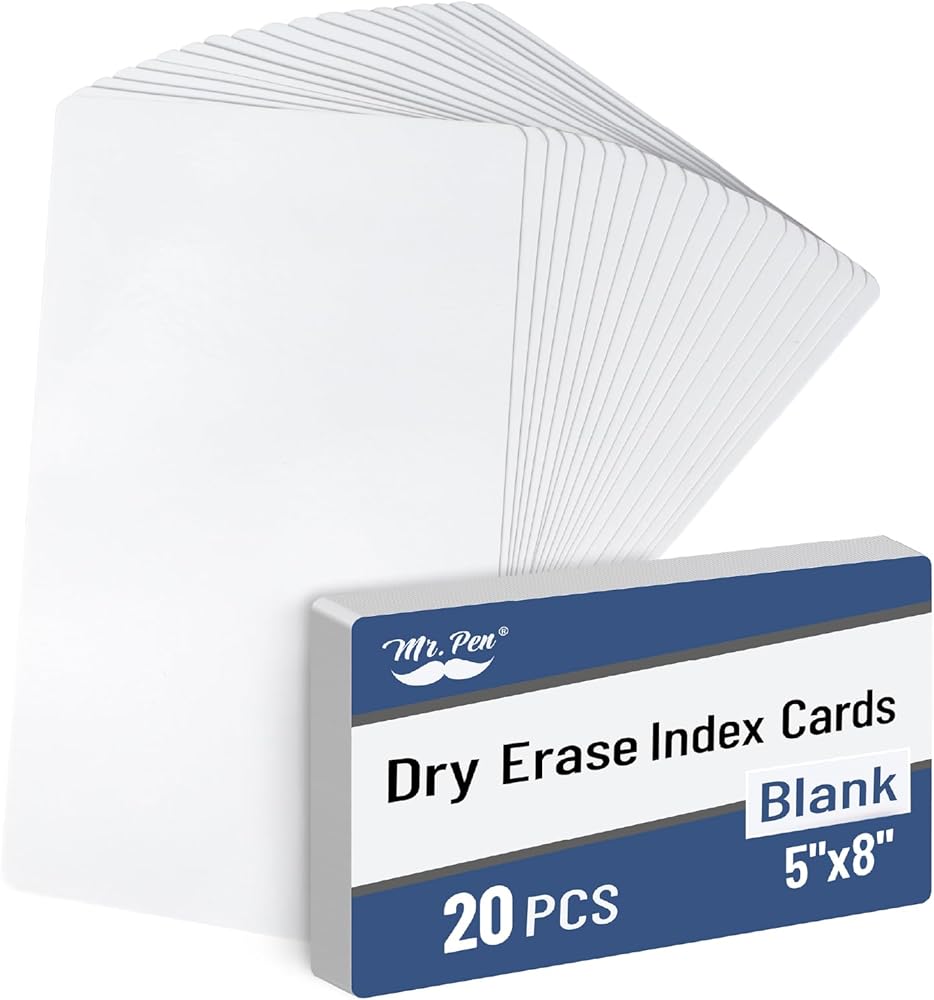 Mr. Pen dry erase index card set includes 20 reusable whiteboard cards, ideal for studying, planning, teaching, and task management.