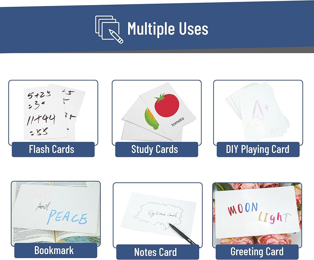 Each card is made from thick, laminated with a smooth dry erase surface that allows for easy writing and effortless cleaning.