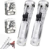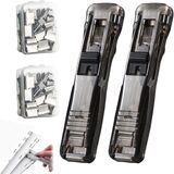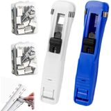Portable Binder Clip Stapler, Includes 100 Reusable Binder Clips, Mini Handheld Paper Clamp Dispenser, Refillable Mini Push Clip Stapler for Office, Saving Space-Slim and Stackable (200 Clips)