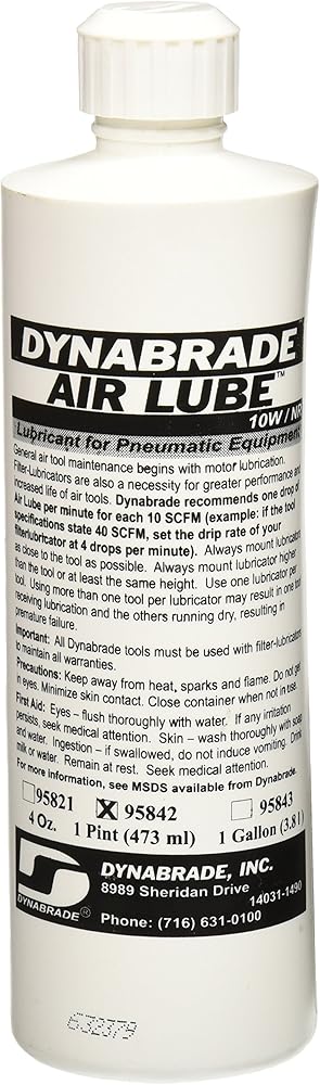 HIGH QUALITY FORMULA: Dynabrade's Air Lube is formulated for pneumatic equipment and is able to absorb up to 10% of its weight in water. It comes in a 1 pint tube to keep your tools in great condition