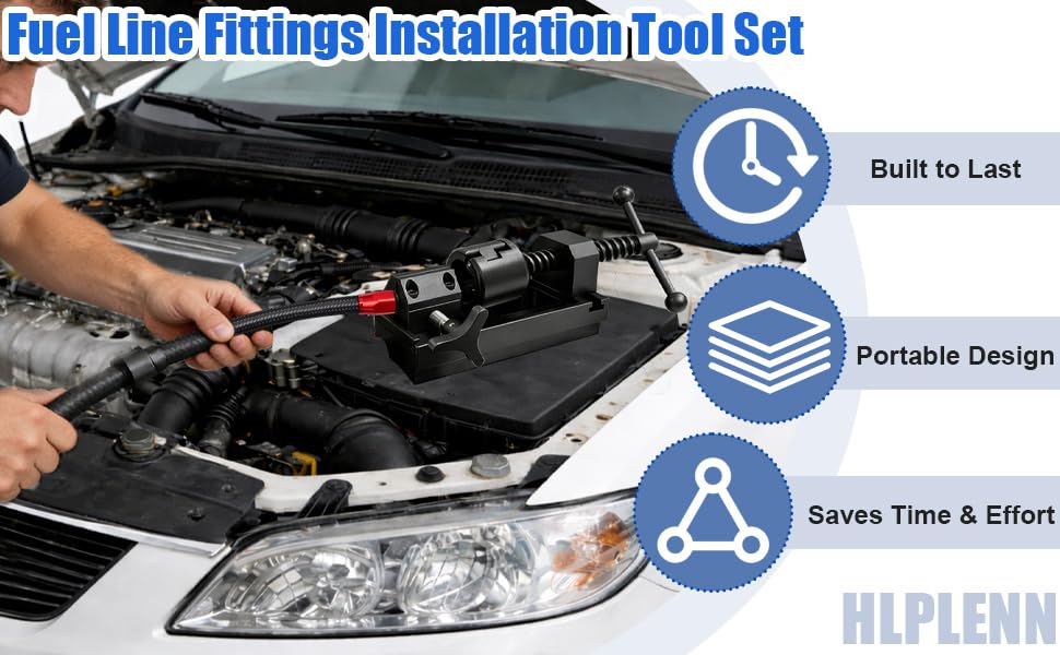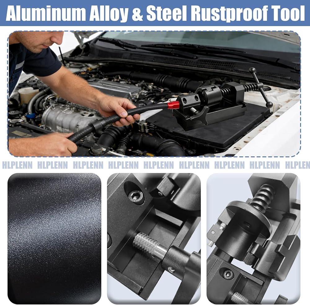 هيكل متين من الألومنيوم والفولاذ: تم تصميم أداة تركيب تجهيزات خط الوقود الخاصة بنا بهيكل من سبائك الألومنيوم الصلب وقوالب فولاذية صلبة لتحقيق أقصى قدر من القوة. تقاوم أداة التركيب القوية هذه التآكل والتآكل، مما يضمن أداءً طويل الأمد في أي بيئة مرآب أو ورشة عمل.