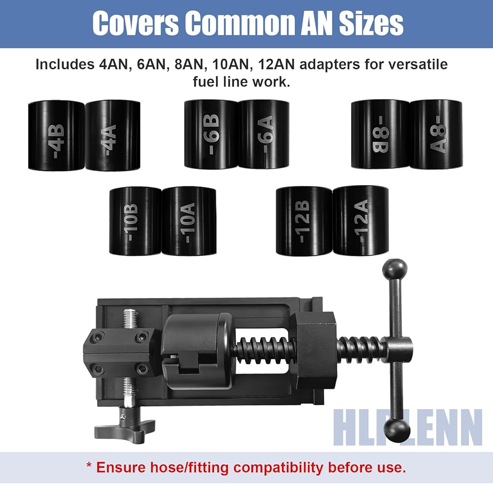 توافق واضح مع خراطيم CPE: تم تصميم هذه الأداة خصيصًا لخراطيم CPE (المطاطية) القياسية وتركيبات AN. ملحوظة: غير متوافق مع أنواع خراطيم PTFE (Teflon) أو NBR. تحقق دائمًا من مادة الخرطوم (CPE) وحجم التركيب (4-12AN) قبل الاستخدام لتجميع خرطوم آمن ومناسب.