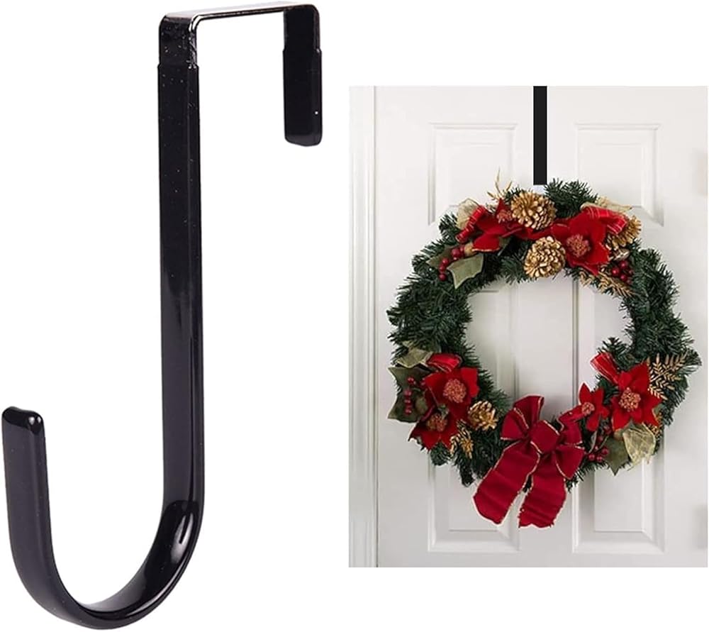 شماعة إكليل أسود - إكليل سقوط قوي يحمل إكليل عيد الميلاد والهالوين، خطاف باب إكليل من الفولاذ الكربوني بطول 5 بوصات، شماعات إكليل ارتفاع، باب أمامي معدني فوق الباب، خطاف فردي، ديكور منزلي