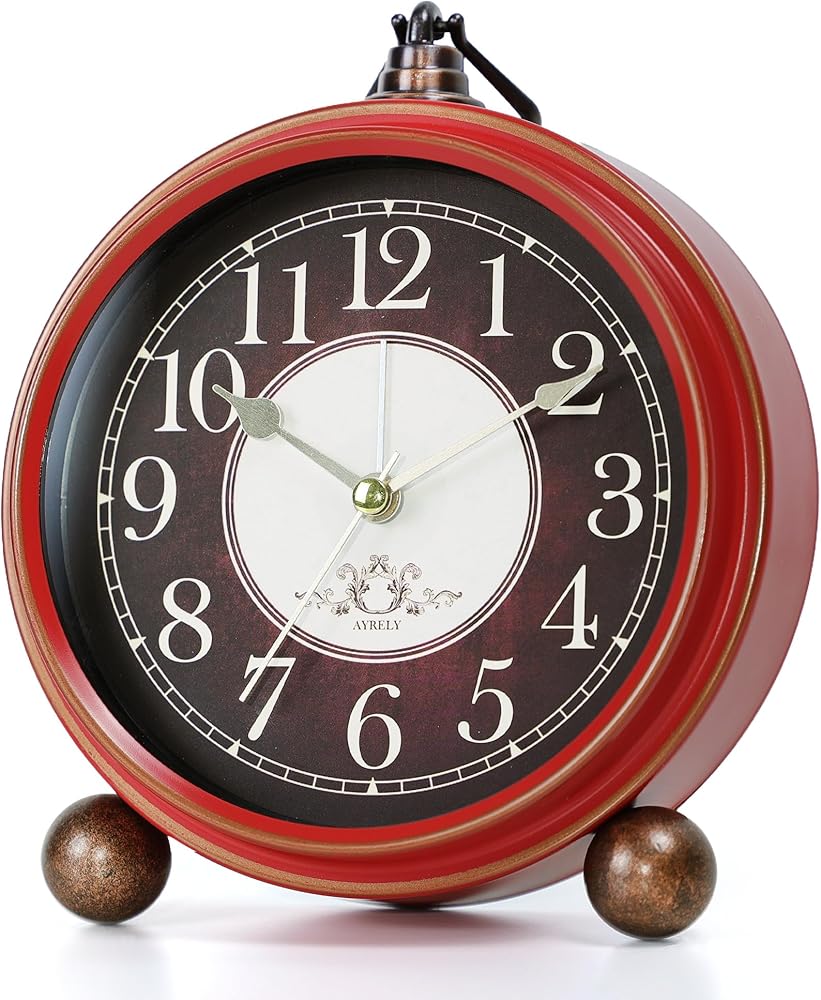 【تصميم معدني عتيق】مصنوعة من جسم معدني، ساعة المنبه التناظرية العتيقة هذه تبدو قوية ومتينة ومصنوعة بشكل جيد. تم تزيين التصميم القديم النظيف بحلقة تعليق معدنية صغيرة في الأعلى وقدمين معدنيتين دائريتين في القاعدة، مما يخلق صورة ظلية متوازنة ذات طابع خالد. متوفر بألوان متعددة، فهو يكمل مجموعة واسعة من الأنماط الداخلية من المساحات الكلاسيكية والعتيقة إلى المساحات الحديثة مع لمسات زخرفية.