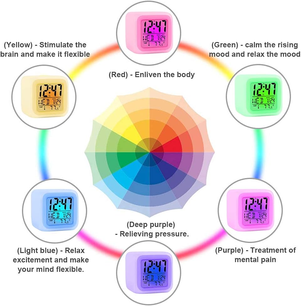 Alarm Clock with 7 Color Changing Night Light, Digital Kid Alarm Clocks with Snooze, Wake Up Digital Clock for Room Decor, Temperature, Gift for Girls Boys, Back to School Gifts