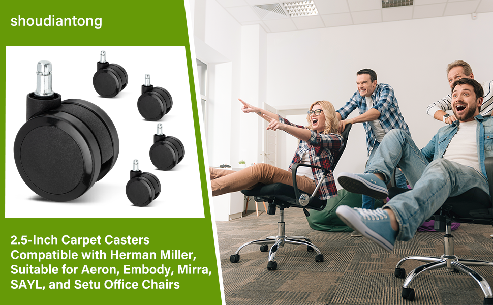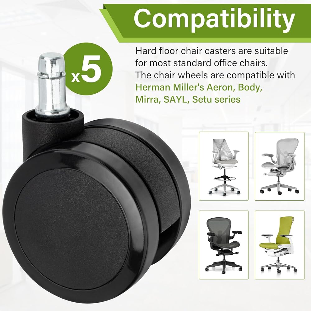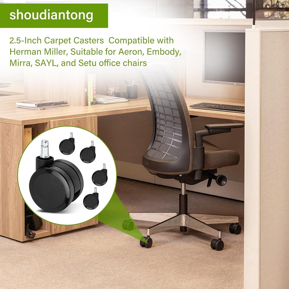 عجلات سجاد مقاس 2.5 بوصة متوافقة مع هيرمان ميلر، مناسبة لكراسي المكتب Aeron وEmbody وMirra وSAYL وSetu (مجموعة من 5، أسود)