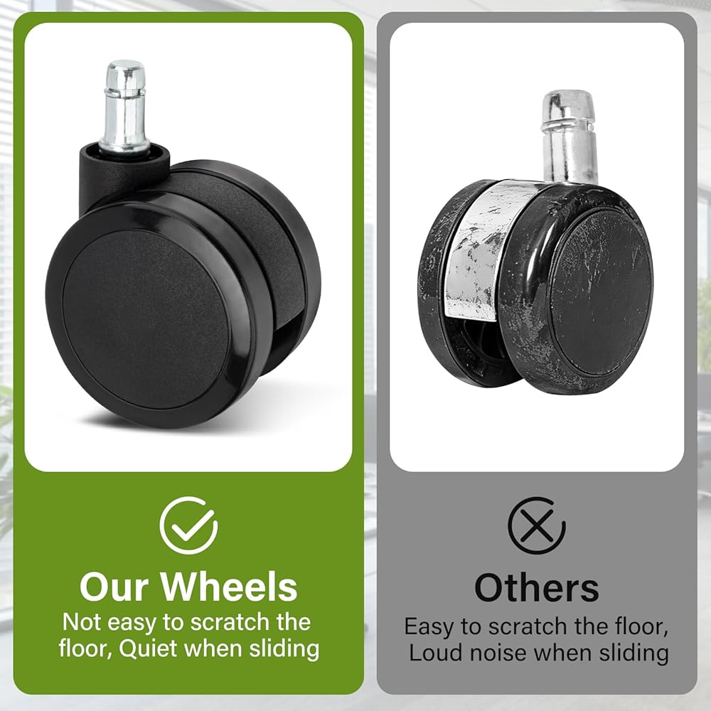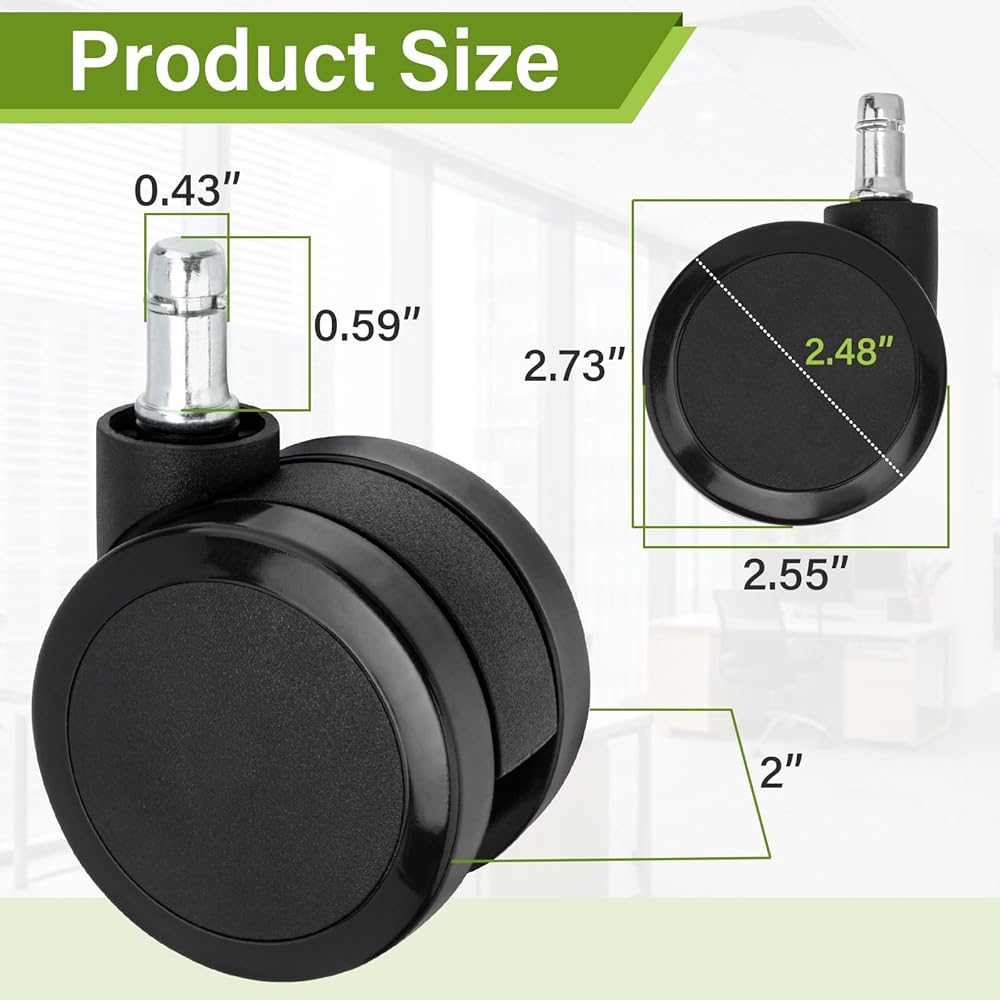 • الملاءمة: عجلات الكراسي ذات الأرضية الصلبة مناسبة لمعظم كراسي المكتب القياسية. تتوافق عجلة الكرسي مع مجموعة Aeron وHerman Miller وBody Mirra Say Set، مما يجعل من السهل استبدال العجلات القديمة. حجم العجلات 2.5 بوصة. يرجى التحقق من حجم عجلات الكرسي الخاص بك.