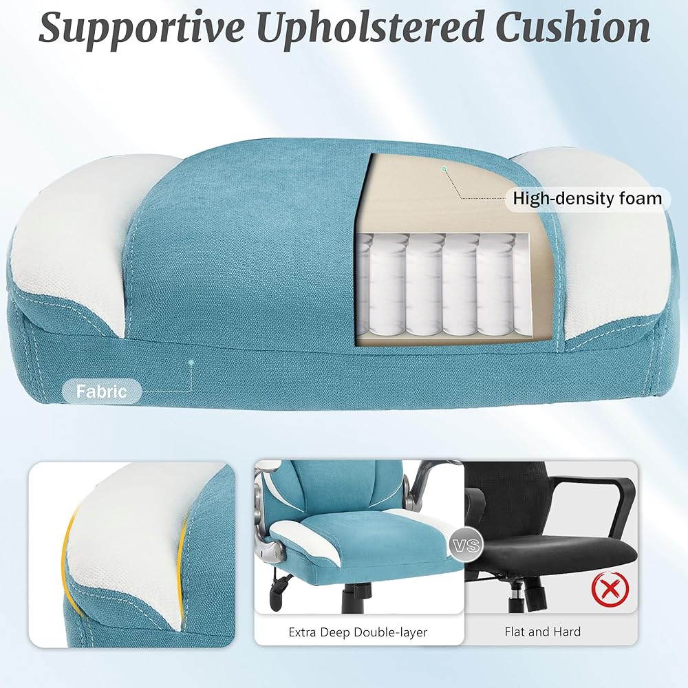 🚀𝑭𝒂𝒃𝒓𝒊𝒄 𝑻𝒘𝒐-𝒄𝒐𝒍𝒐𝒓 𝑫𝒆𝒔𝒊𝒈𝒏=𝑺𝒊𝒕 𝒊𝒏 𝒔𝒕𝒚𝒍𝒆, 𝒘𝒐𝒓𝒌 𝒘𝒊𝒕𝒉 𝒆𝒂𝒔𝒆 Gone are the days of boring office chairs. Our chairs are the face of fashion, featuring a chic two-tone design available in four eye-catching colors: “Black Gray”, “Blue White”, “Pink White” and “Light Gray”. It's like a stylish canvas for your workspace. Breathable fabric fabric is skin and pet friendly and less likely to scratch and pill than leather fabric. This chair is not only suitable for sitting, it makes a statement anywhere!