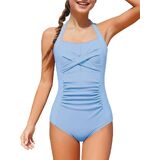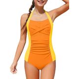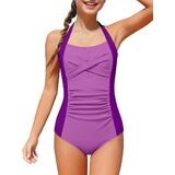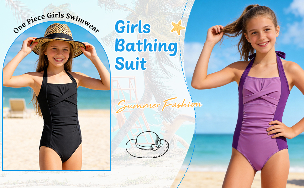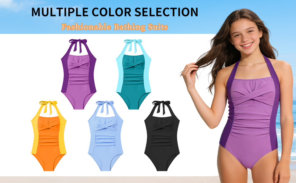 【تصميم رائع】تتميز بدلات السباحة بلون ثابت وملاءمة جذابة. يضيف اللون الصلب المتباين ورسن الرقبة لمسة رقيقة، كما أن رباط الظهر القابل للتعديل يسمح بملاءمة مخصصة. تخلق ملابس السباحة للفتيات مظهرًا أنيقًا يوفر الأناقة والتغطية الآمنة.