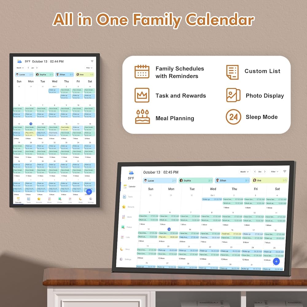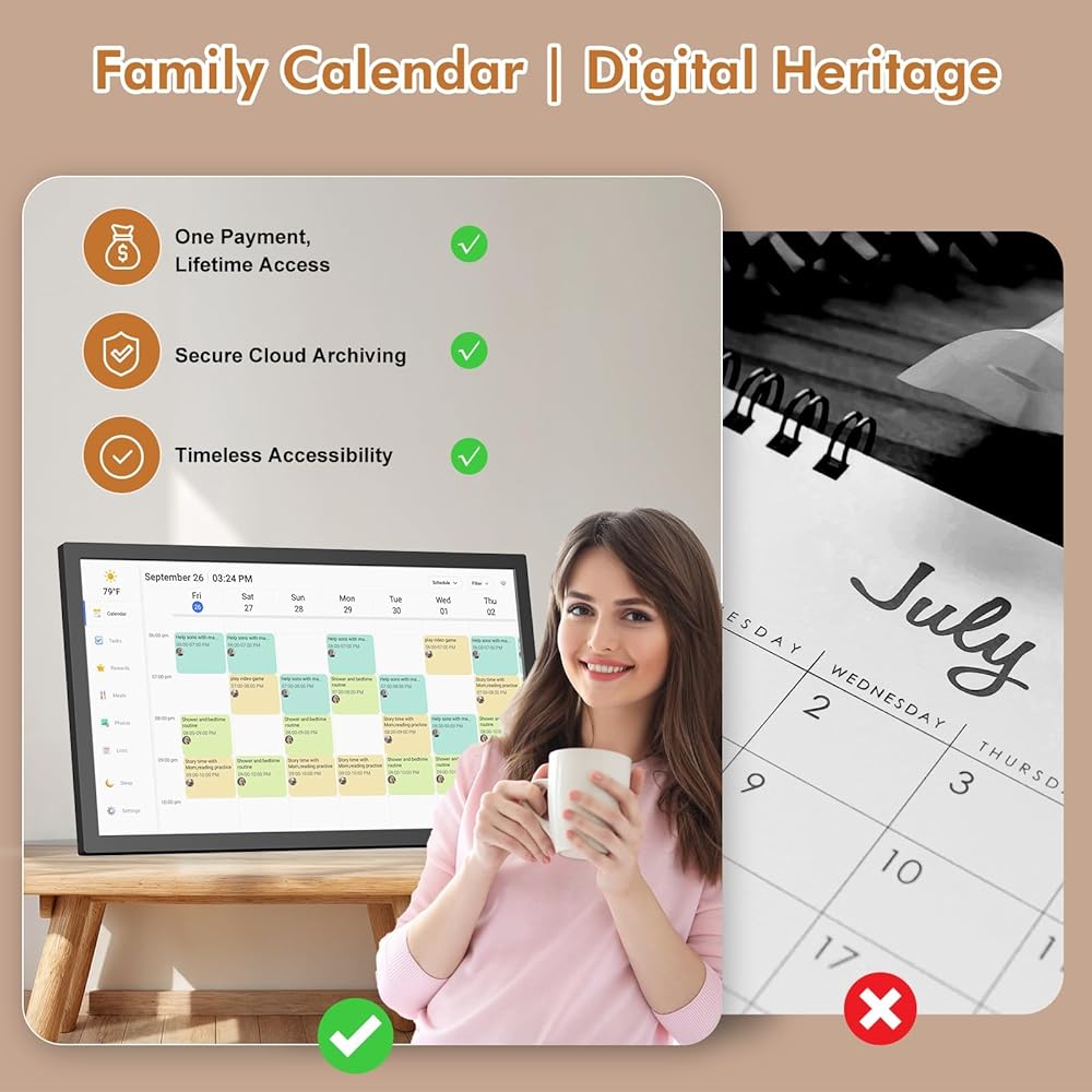 【Amazing Gift Idea&One-Year Warranty】This electronic wall calendar family planner is a wonderful gift for Father's Day, Mother's Day,Valentine's Day, Thanksgiving, Christmas, Wedding, Birthday and so on. Share your digital family calendar touchscreen with friends, family, and coordinate plans effortlessly. Count on our comprehensive after-sales service, which includes 24-hour customer support. Our team is always available to ensure your nice calendar for wall meets your expectations.