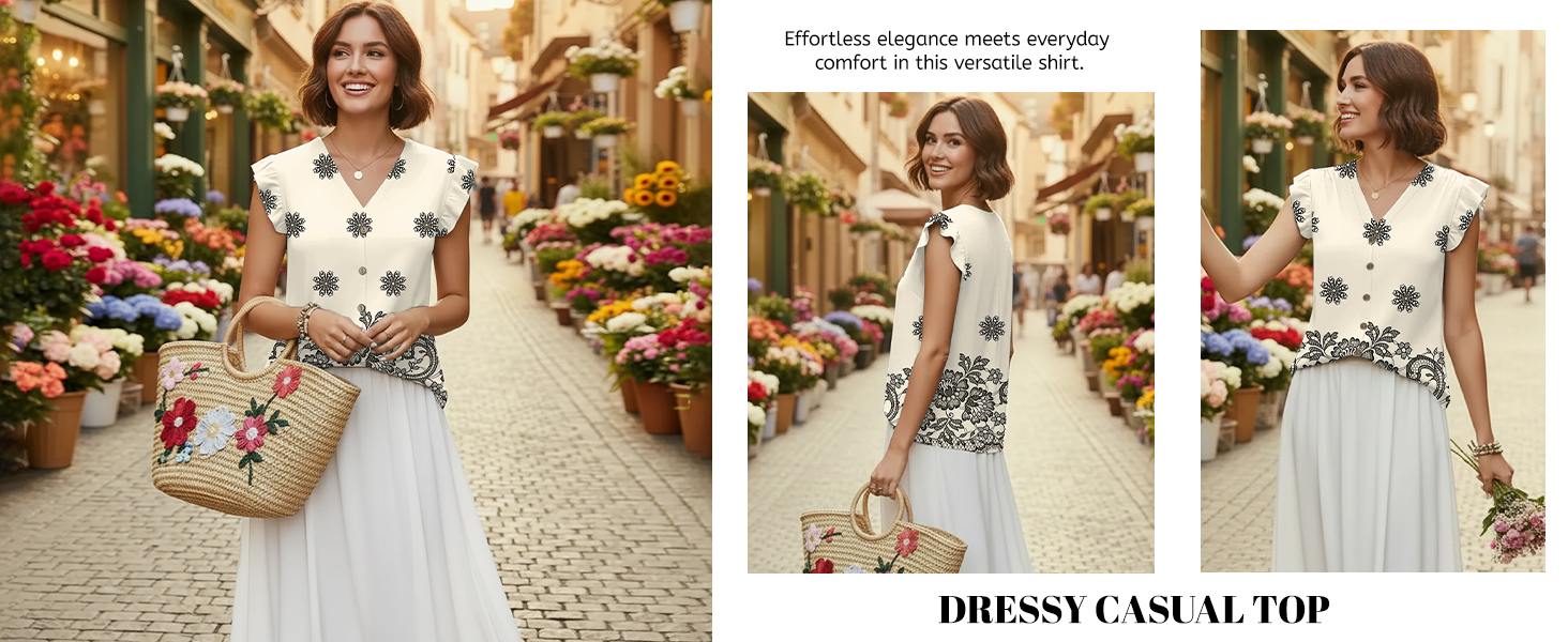 • القطعة الأساسية الموسمية الخاصة بك: قطعة علوية صيفية أساسية مثالية أيضًا لفصلي الربيع والخريف. هذه البلوزة متعددة الاستخدامات ذات التصميم الزهري والرقبة على شكل حرف V يجب اقتناؤها في خزانة ملابسك، وهي مصممة لتناسب الطقس العلوي بأكمام قصيرة وقابلة للتكيف مع طبقات على مدار العام.