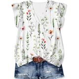 قمصان نسائية صيفية كاجوال أنيقة ومزينة بالزهور ورقبة على شكل حرف V وبلوزات تونيك بأكمام قصيرة وكشكشة in Kuwait