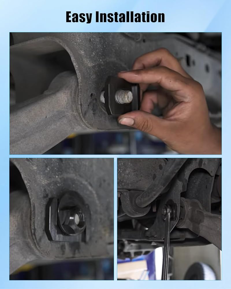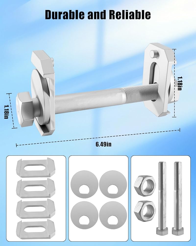 Durable and Reliable: Constructed entirely of high-strength metal, camber caster adjustment kit boasts a robust structure and excellent fatigue resistance, capable of withstanding the impacts of long-term driving, heavy loads, and complex road conditions, ensuring long-term stability