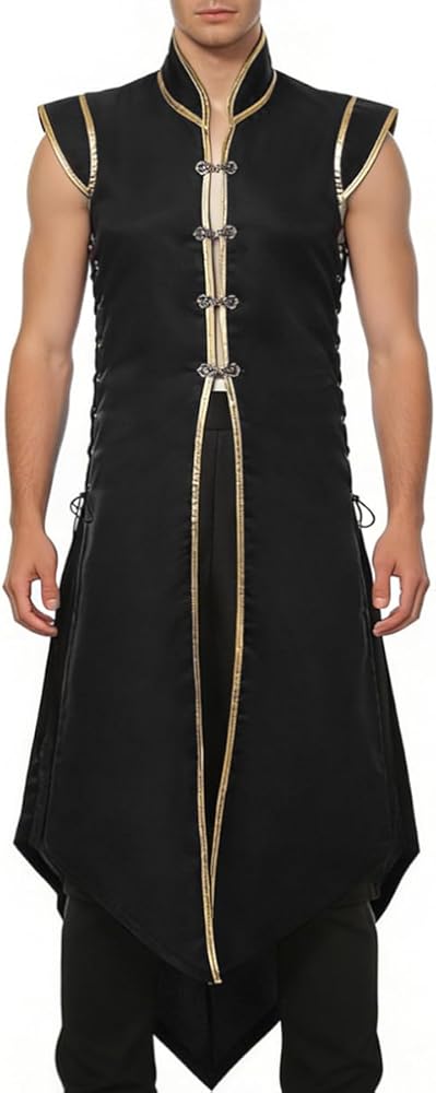 تشمل العبوة: 1* سترة طويلة من العصور الوسطى للرجال. مصممة لتتماشى بسهولة مع تونيكات القرون الوسطى، أو قمصان عصر النهضة، أو قمصان على شكل قرصان، أو قطع أزياء ذات طبقات