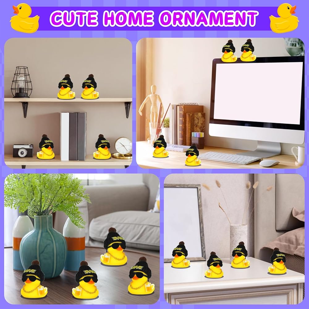 VERSATILE DECOR FOR ADULT SPACES – The lucky ducks, beyond the car, use the included adhesive stickers (3pcs 1cm + 1pc 2.5cm) to secure it to your office desk, monitor, bedroom shelf, or gym locker. Its compact size (approx. 1.97 inches) and fashionable accessories create a fun focal point in any adult environment.