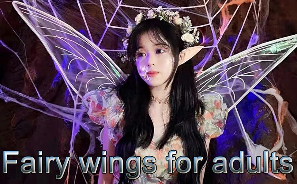 【خامة عالية الجودة】أجنحة الملاك ذات حواف بسلك معدني، وهو ليس من السهل تشويهه. القماش مصنوع من الأورجانزا وله تأثير متدرج سحري يخلق وميضًا ملونًا لطيفًا في الإضاءة الخارجية.