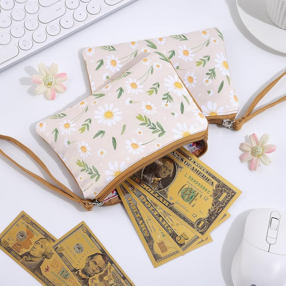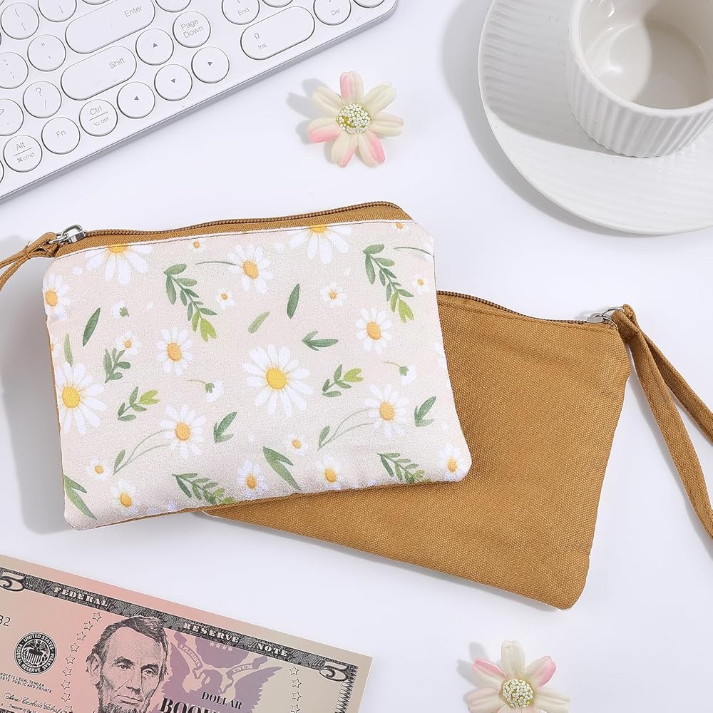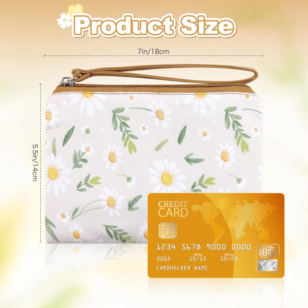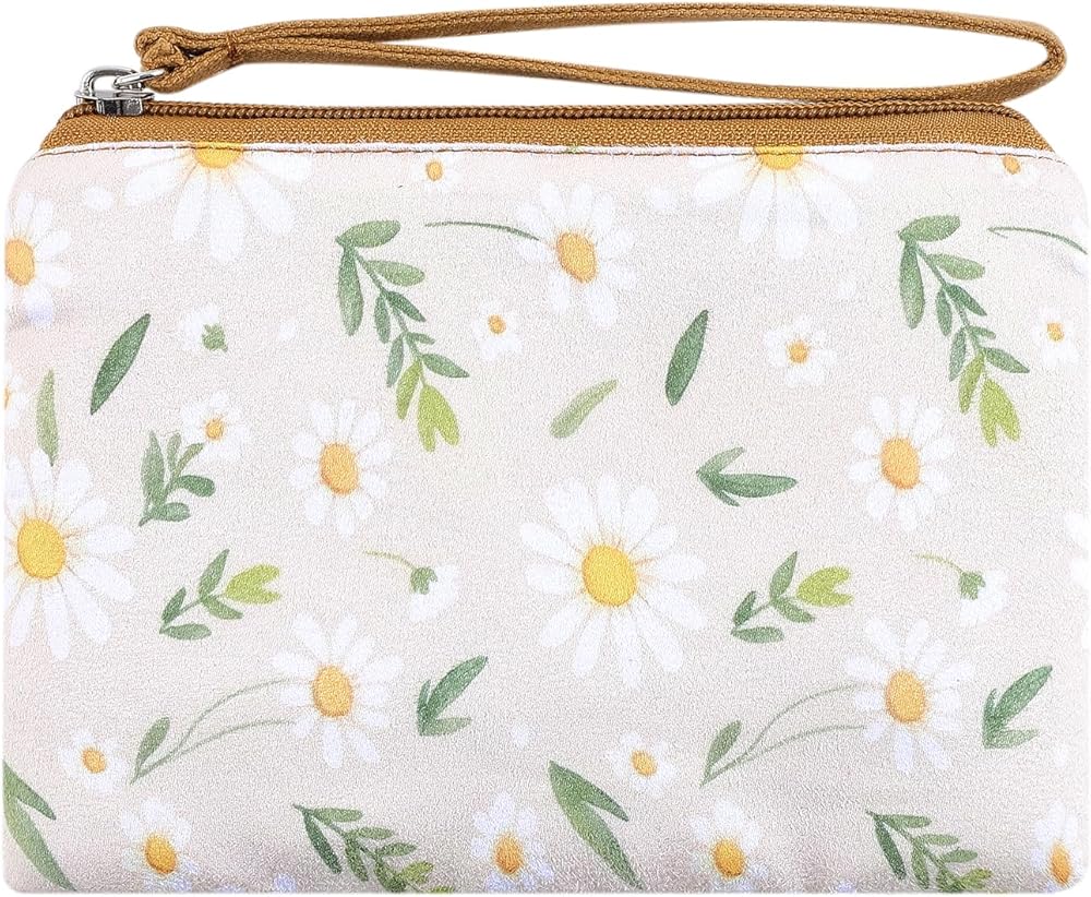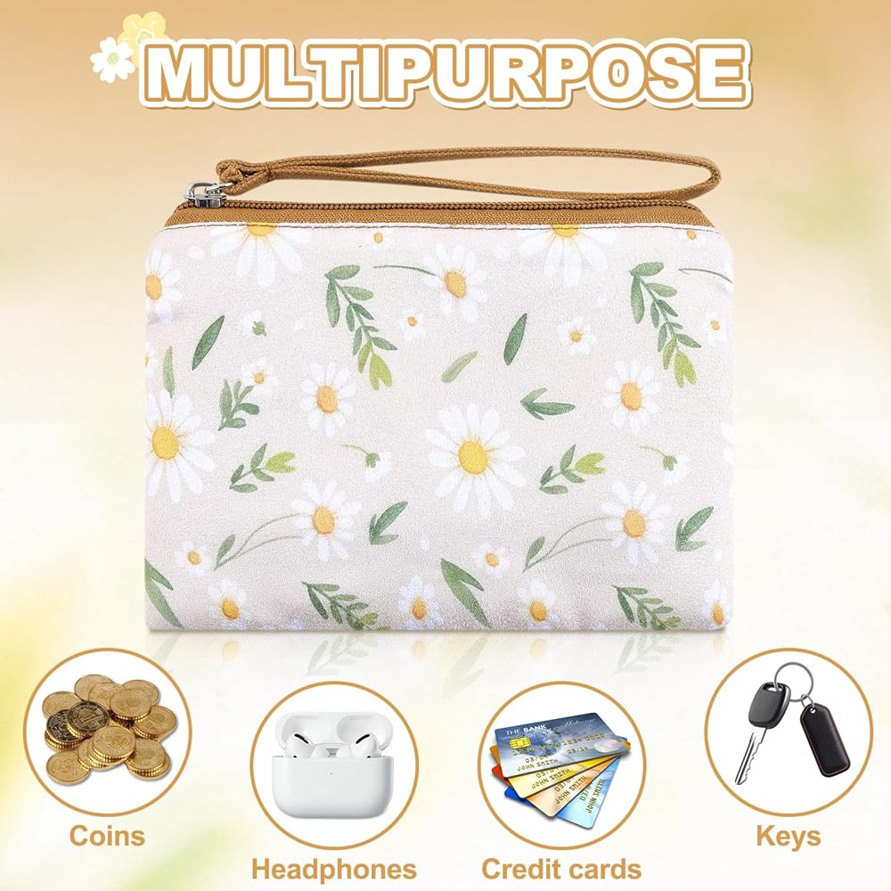 Versatile Floral Wristlet Pouch – With a convenient wrist strap, this women's daisy coin bag doubles as a mini clutch: ideal for quick outings, shopping, or organizing makeup in your handbag. The zipper closure keeps items secure.