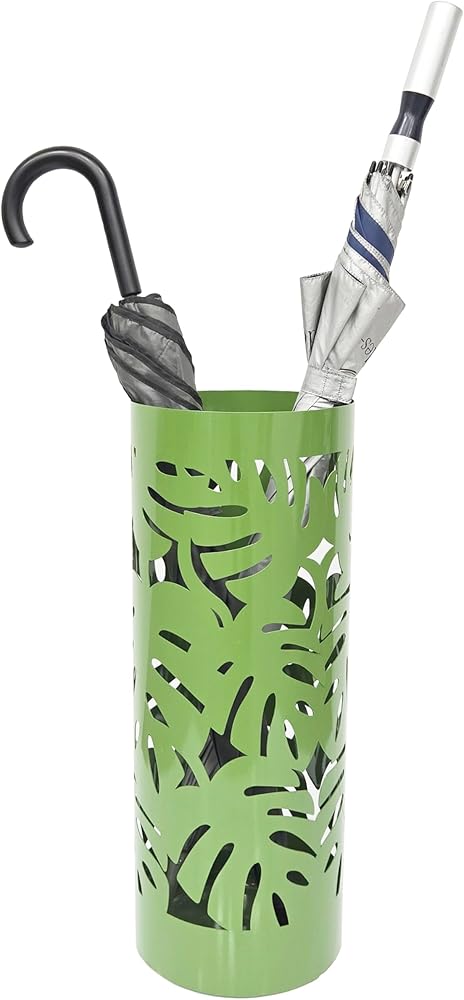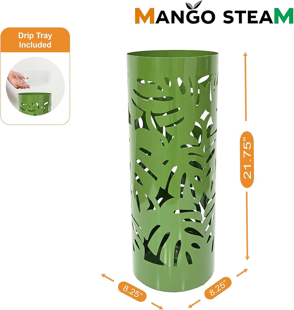 Mango Steam Ivy Umbrella Holder. Keep your floors dry on a rainy day with this unique modern style umbrella stand with an open ventilation design! Certain to catch the eye, this umbrella stand adds a dash of whimsy to your entryway with its green nature themed design. Crafted from metal, this umbrella holder is powder coated and rust resistant to ensure continuous use. The Drip tray is included for wet umbrellas and the umbrella stand comes fully assembled to be used straight out of the box!
