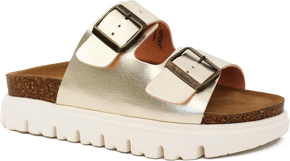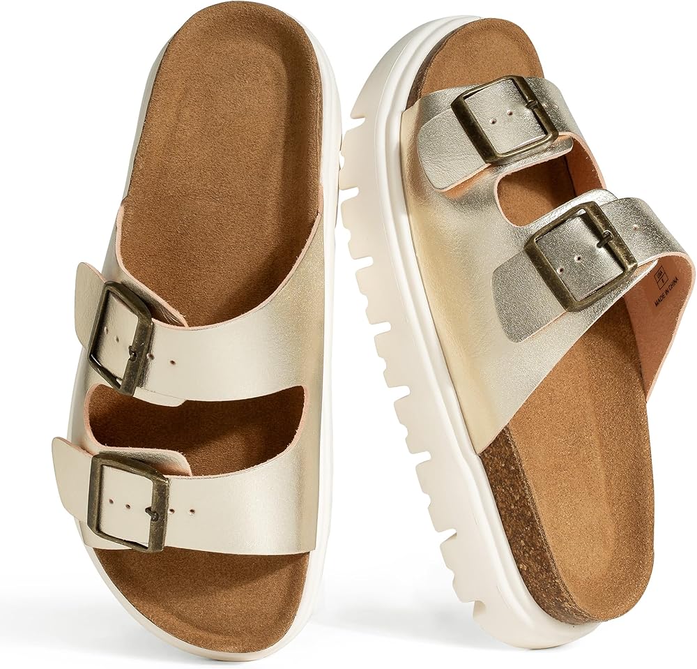 Women's Platform Wedge Sandals with Cork Footbed, Chunky Open-Toe Slip-On Slides with Adjustable Straps, Comfortable Lightweight Summer Casual Footwear, Stylish Supportive Beach and Everyday Walking Sandals