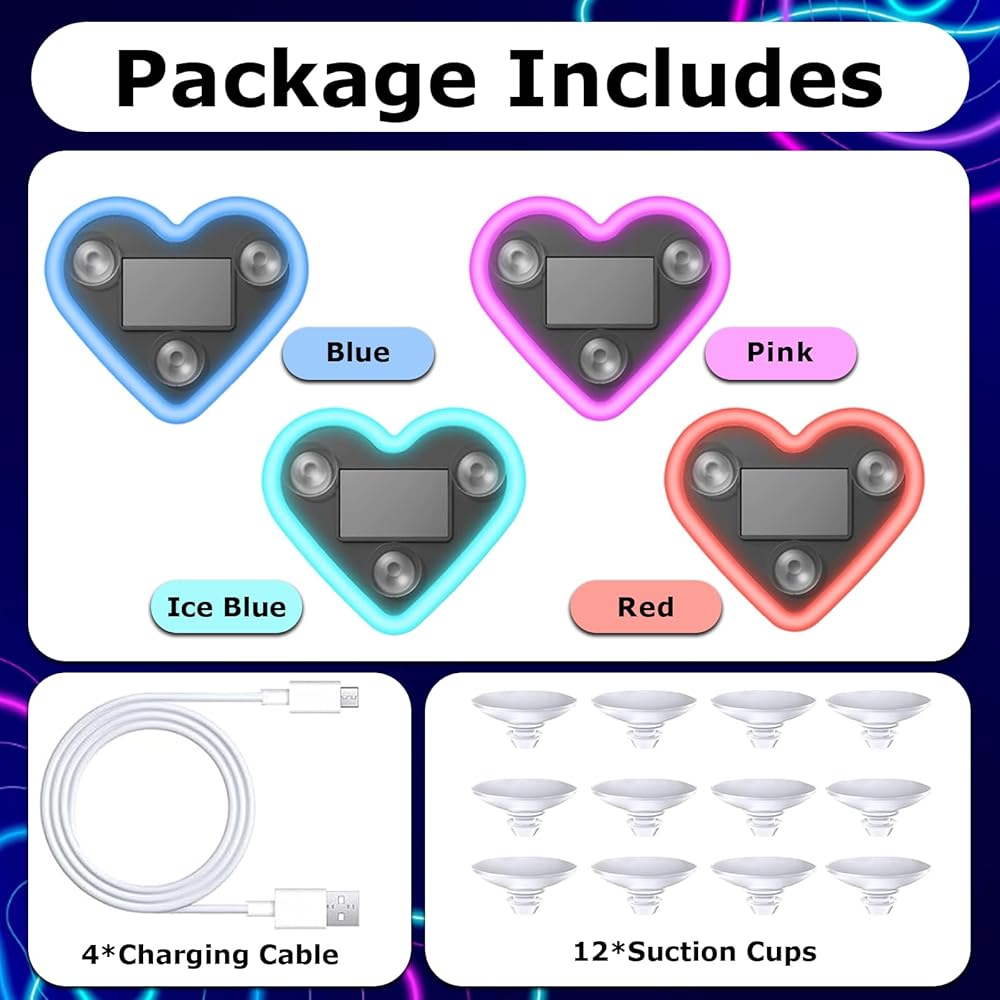 4 قطع ضوء على شكل قلب للسيارة، ضوء نافذة السيارة يعمل بالطاقة الشمسية مع 5 أوضاع قابلة للتحويل، IP65 مقاوم للماء للقيادة الليلية، ديكور داخلي وخارجي للسيارات الرومانسية، هدايا عيد الحب والأزواج