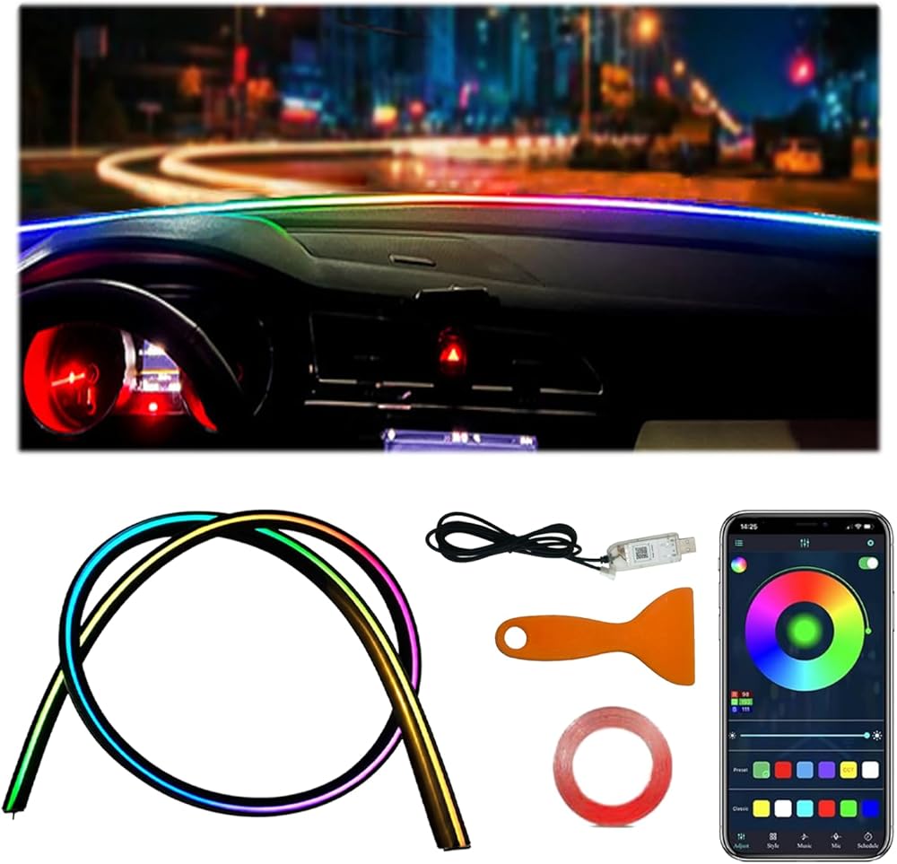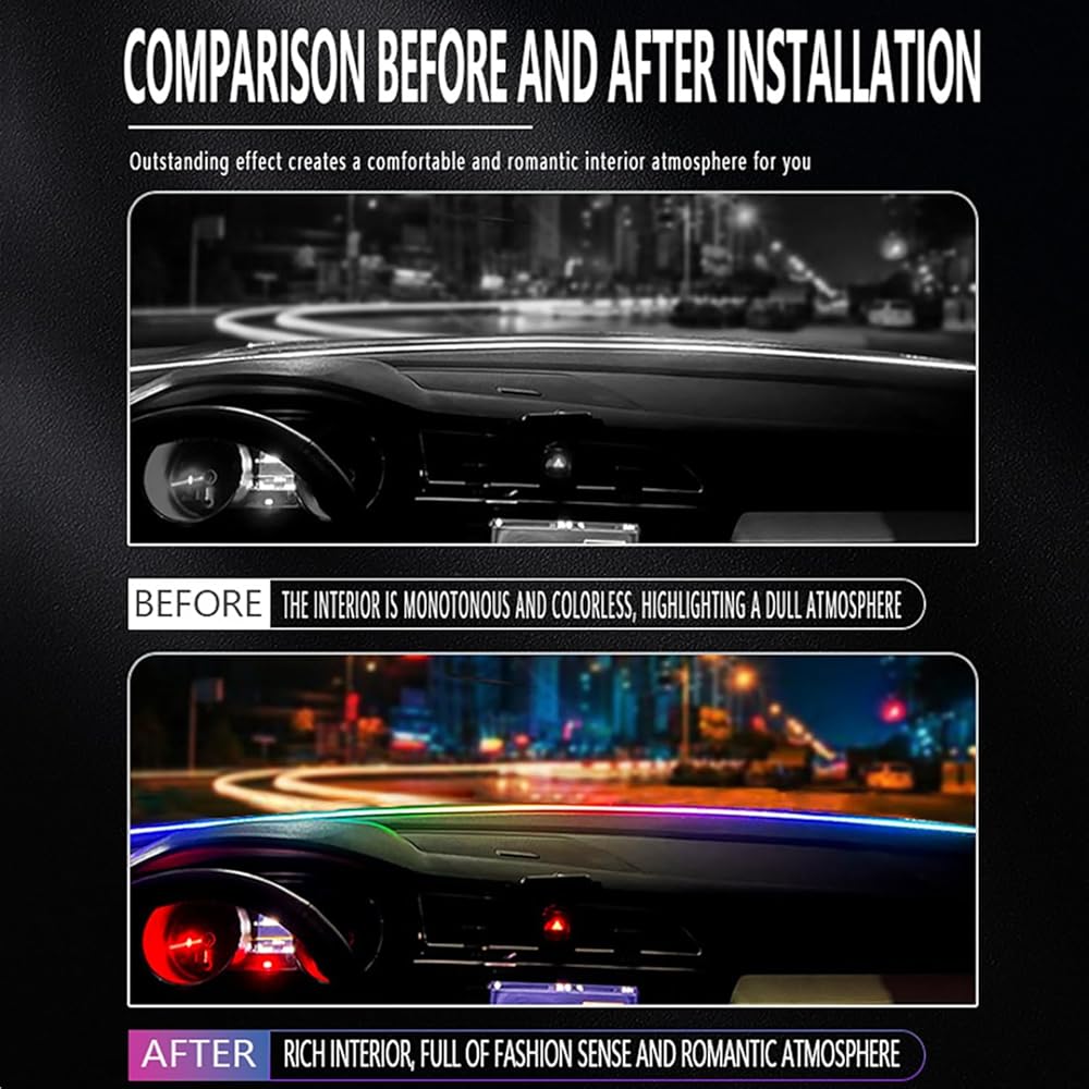 [Plug & Play USB Installation]:No vehicle modification needed. Simply insert the strip into the dashboard gap, hide the wiring cleanly, USB powered, and compatible with most cars, SUVs, and trucks.