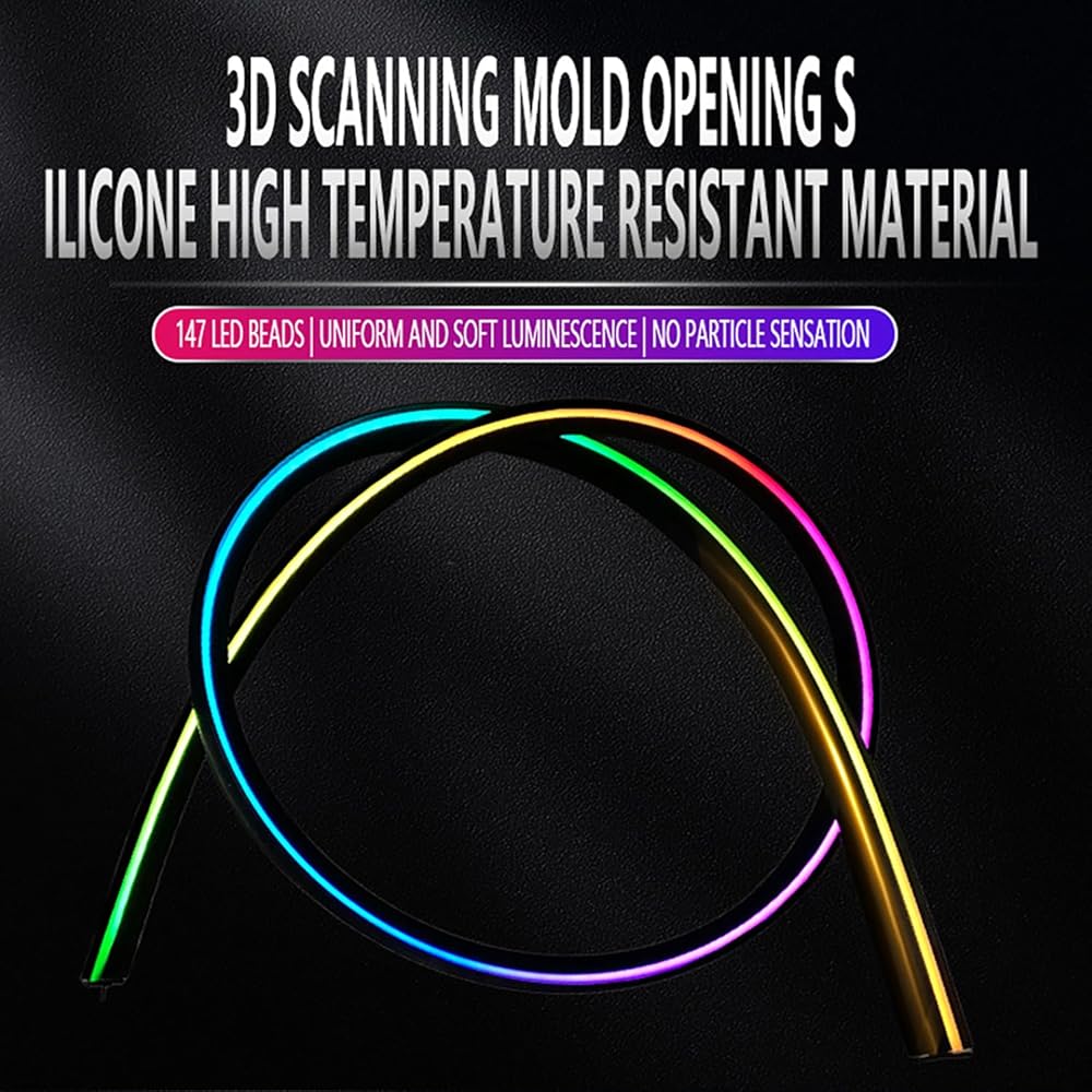 [Acrylic Gap Filler with Neon Ambient Lighting]:Acrylic interior car LED strip light integrates dashboard gap filler and neon ambient lighting in one design. The 55.1" flexible strip fills console gaps to prevent small items from falling while creating a smooth, wrap-around ambient glow.