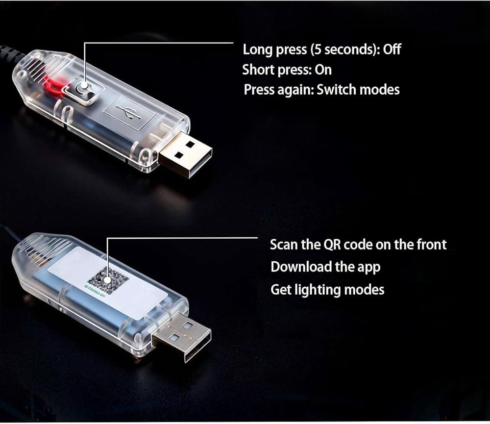 [Button Switch & APP Control]:Equipped with a built-in button switch for quick on/off control. Use the mobile APP to adjust RGB colors, brightness, and dynamic lighting modes easily