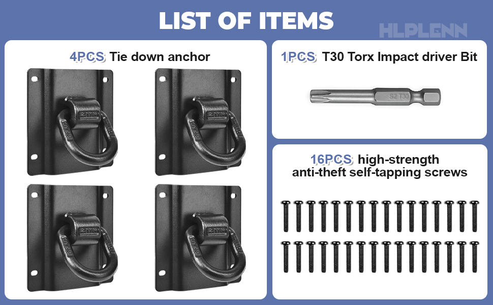 Easy Installation & Removal: These tie downs and anchors are designed for hassle-free installation and removal. They only require fixing with 4 anti-theft screws, which is simpler than models installed with key bayonets and eliminates the trouble of losing keys. For smoother installation, we recommend spraying some oil into each threaded hole first, then applying a small amount of oil to the screws; align the screws properly, and the entire installation can be completed in just minutes, even for beginners.