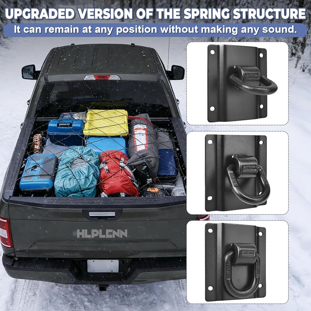 Unique Design: These tie down anchors feature a unique circlip design that enables free unfolding and folding without any shaking or looseness. Unlike ordinary tie down anchors, this design effectively avoids noise generation while the vehicle is in motion, ensuring a quiet and comfortable driving experience, even when hauling cargo for long distances.