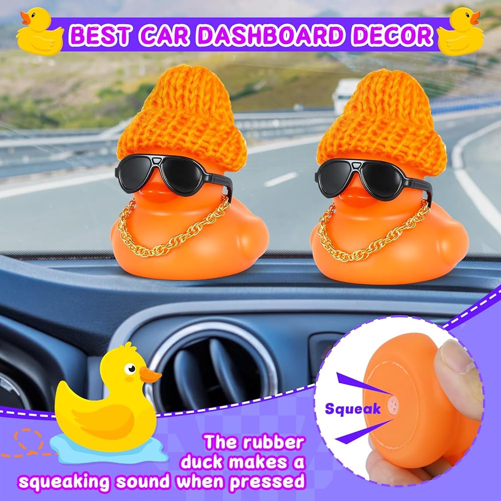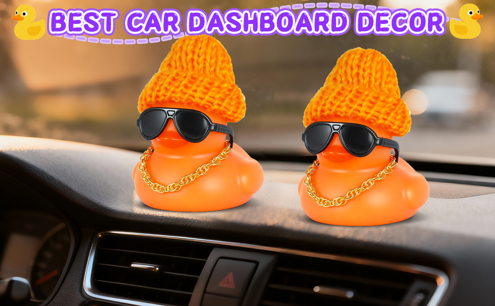 Ultimate Car Dashboard Decorations: Brighten your dashboard with this vibrant orange duck! Its festive accessories add playful charm to driving, reducing stress and sparking joy during commutes or road trips.