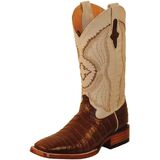 Ferrini boots are handcrafted with superb attention to detail These Ferrini cowboy boots features a chocolate caiman belly leather foot under an embroidered 13" leather shaft. Leather lining. Low block heel. Double stitched welt. Easy-on pull straps and updated wide square toe profile. Imported. Foreign restrictions apply.
