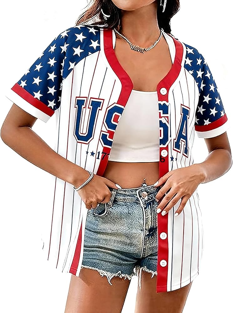 Versatile Everyday Wear: The versatile button-down collar and short sleeve design make it an easy layering piece. Pair it with denim shorts for a barbecue, wear it open over a tank top, or style it with jeans for a casual look. Ideal for 4th of July parties, Memorial Day gatherings, baseball games, or everyday wear.