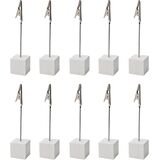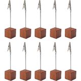 Package contains: 10pcs light wooden color wooden cube base memo clip holders.