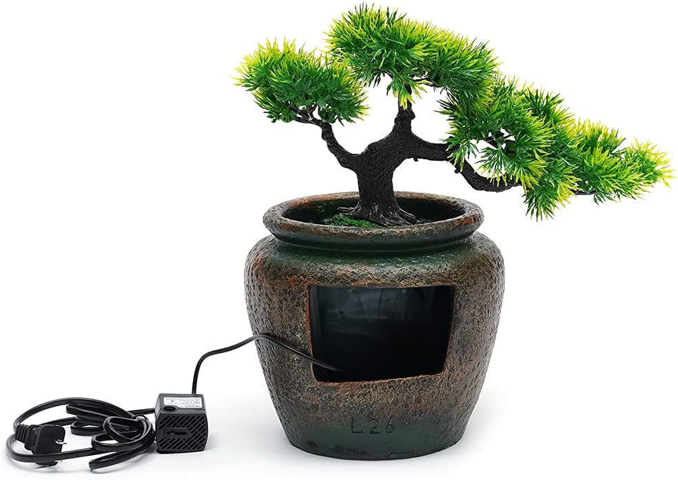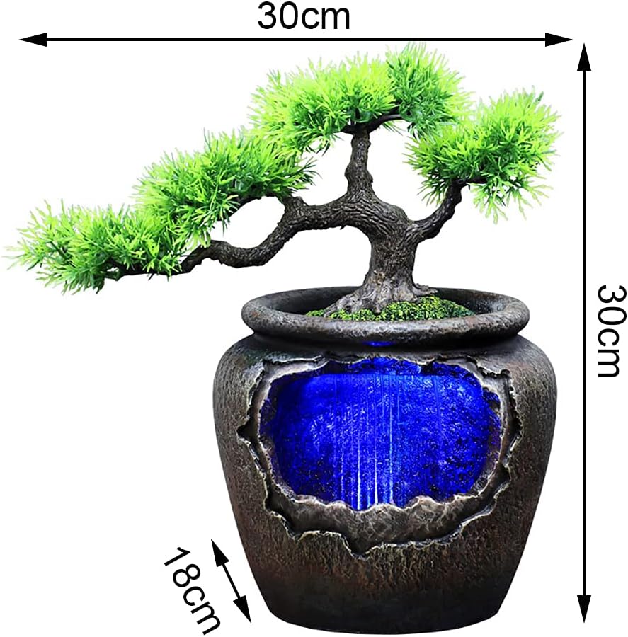 【Simulation Landscape】Adopts simulation landscape modeling with trees and rockeries, the water flows through the fountain. You can cultivate succulent plants beside the rockery and feed goldfish in the bottom round base. Product size: 28 x 15 x 20 cm