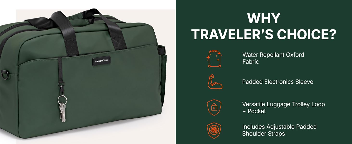 The Wanderbout is designed for modern traveler's in mind, taking the hassle out of packing for the weekend getaways or business trips. Crafted from water resistant Oxford fabric, this bag not only protects your electronics and belongings from rainy days or spills, but also offers long-lasting durability with its tightly woven, abrasion-resistant material designed to withstand daily wear and tear. The clamshell opening lets you pack and unpack like a suitcase, giving you full visibility without the need to rummage through your bag. Safeguard your electronics with a dedicated padded sleeve with a secure strap that keeps your tablet and laptop (up to 16-inches) snug and protected from bumps and drops. Conveniently carry the duffel multiple ways using the durable carry handle, removable padded shoulder strap, or go hands-free using the back luggage loop, allowing the duffle to slide your luggage handle through to take the weight off your arms for easy portability. The front zippered pocket features multiple interior organizers and a key leash, making it easy to access small essentials. The expandable side pocket securely holds a water bottle, keeping it secured and in place. Ready for every journey, the Wanderbout keeps your essentials organized, protected, and always within reach. Product Dimensions: 19"L x 11"H x 8.5"W. Weight: 2.80 lbs